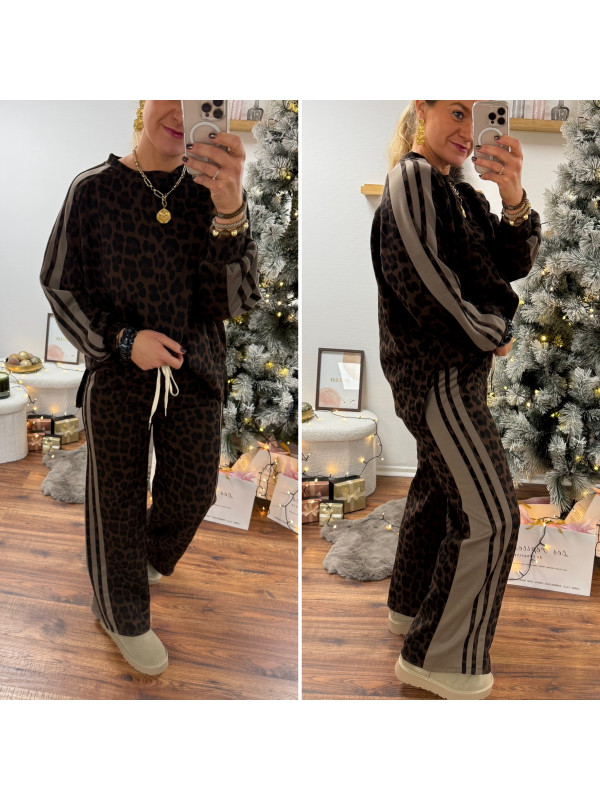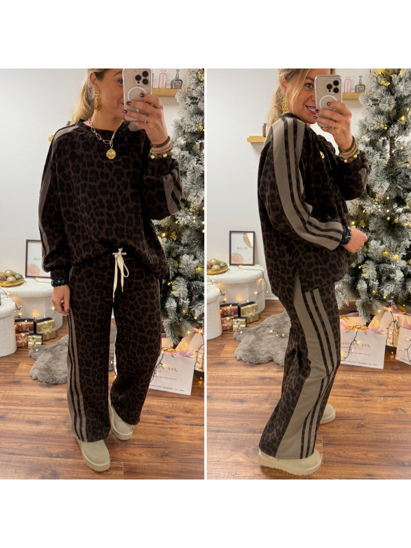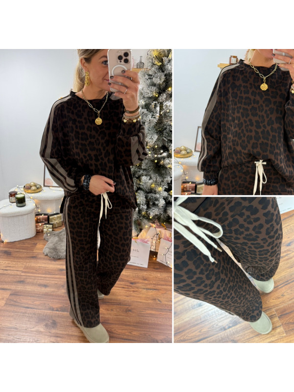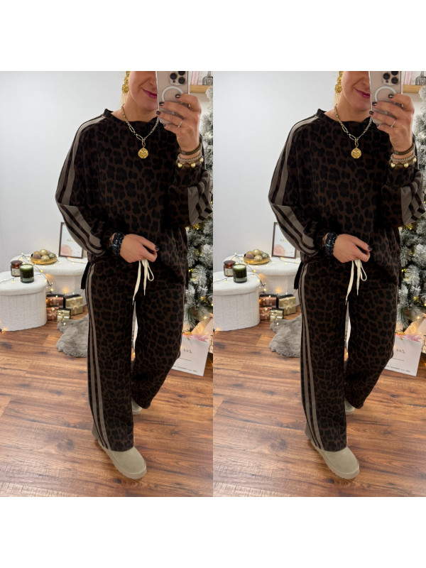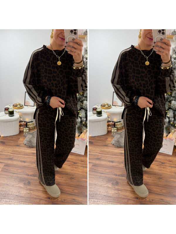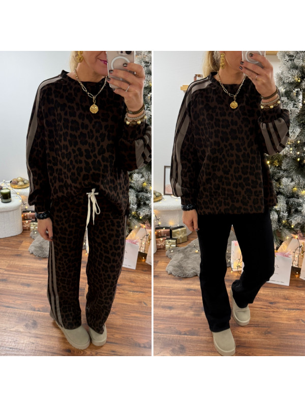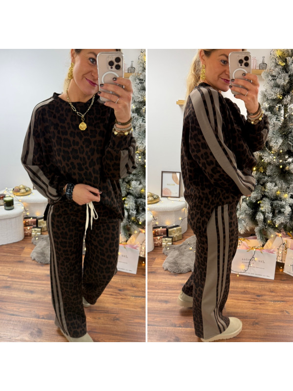 Pantalon souple chocolat léopard avec bandes taupes sur les côtés