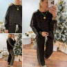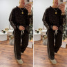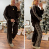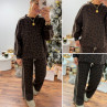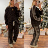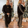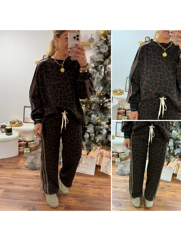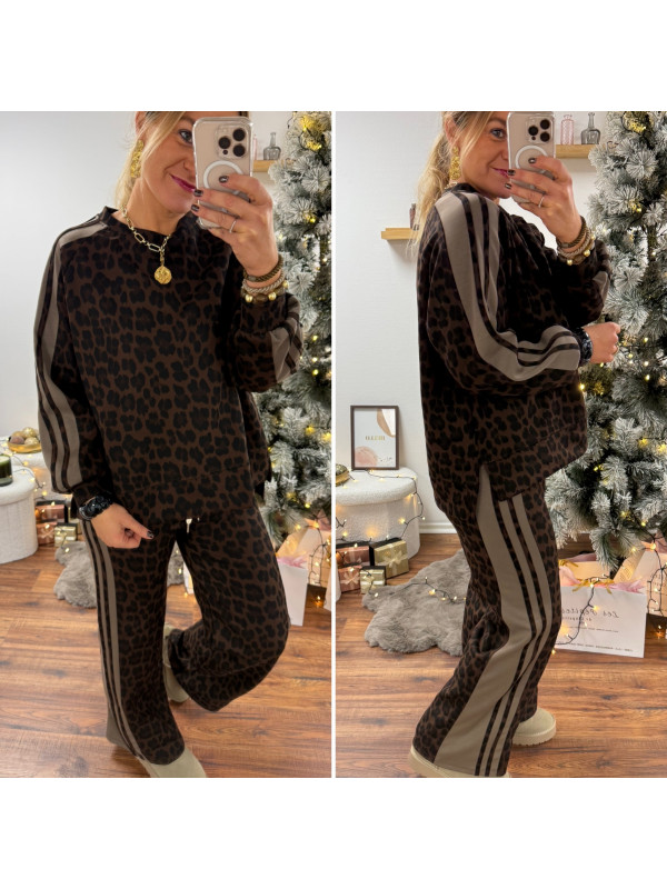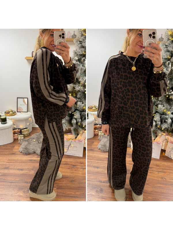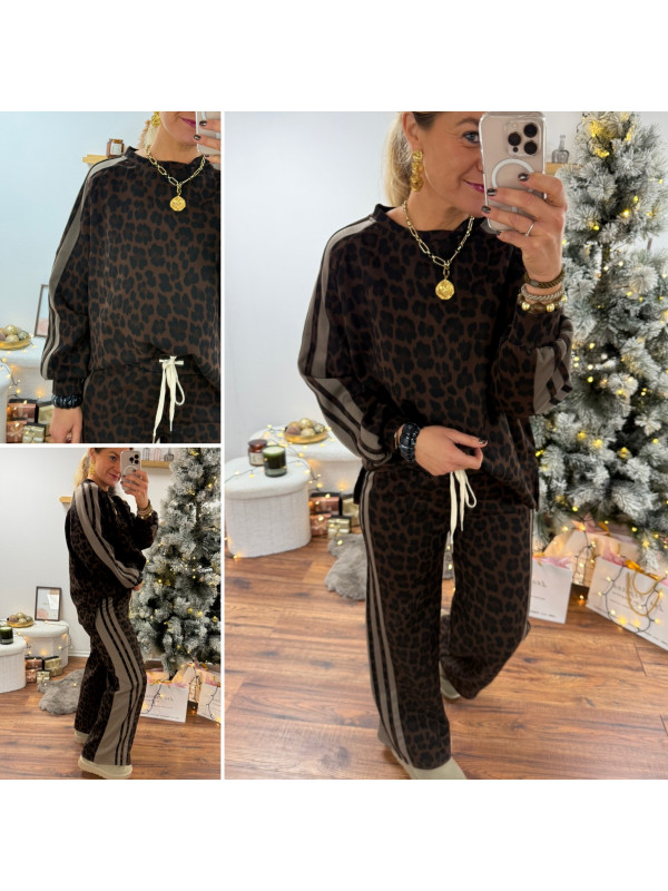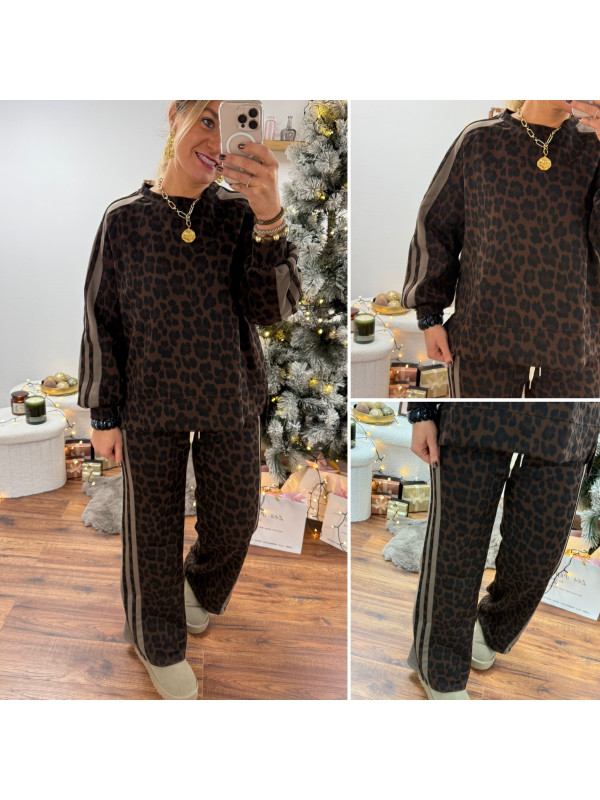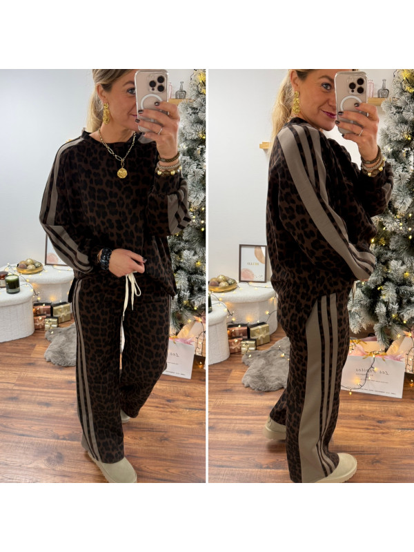 Pantalon souple chocolat léopard avec bandes taupes sur les côtés