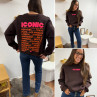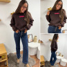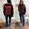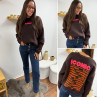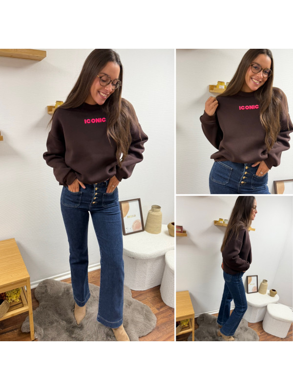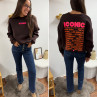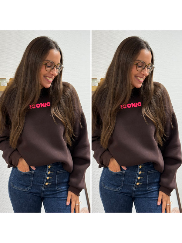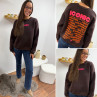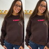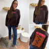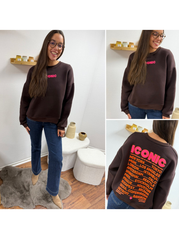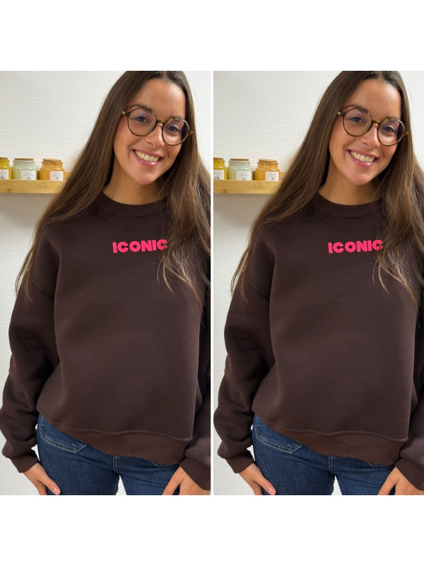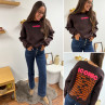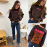 Sweat épais fourré tout doux couleur chocolat avec écritures iconiques en rose fluo et orange