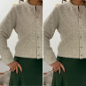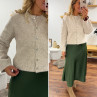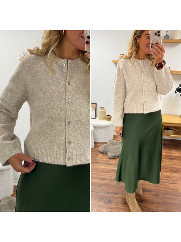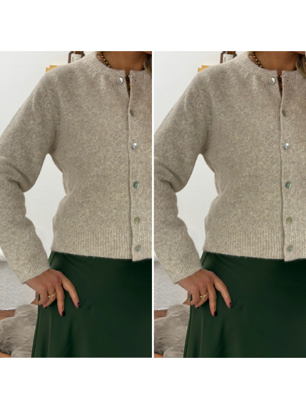 Gilet épais beige chiné avec boutons nacrés et manches évasées