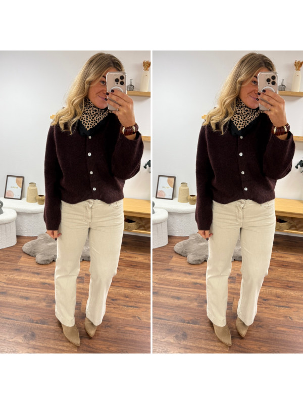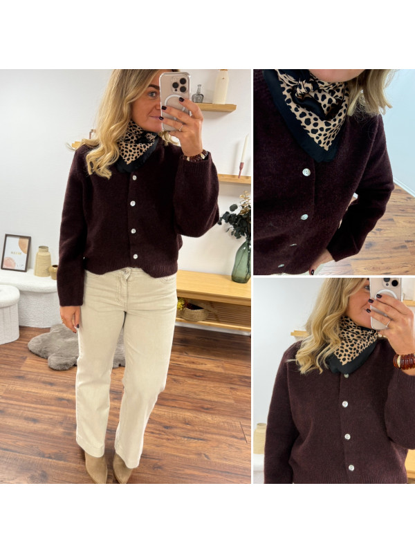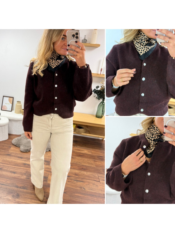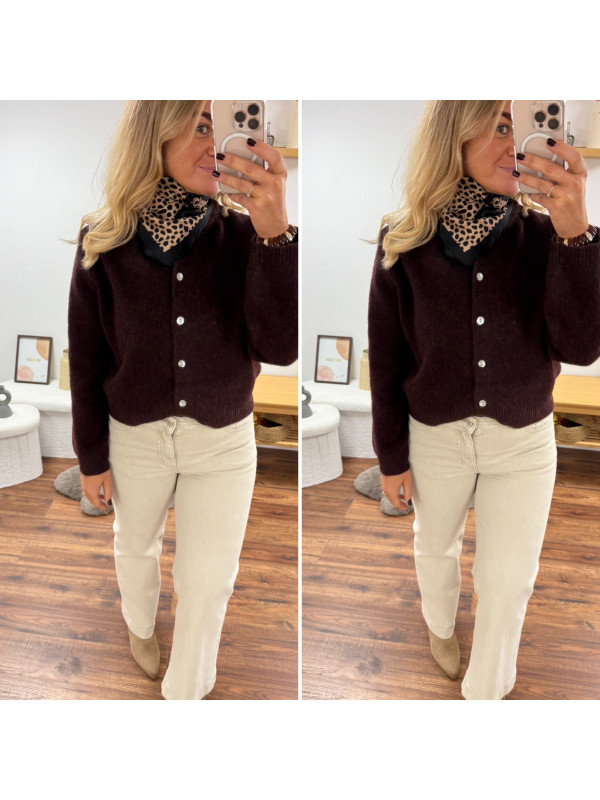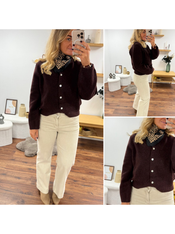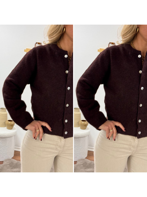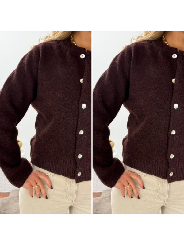 Gilet épais bordeaux/chocolat avec boutons nacrés et manches évasées