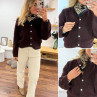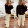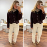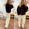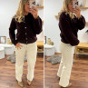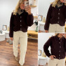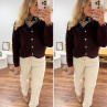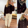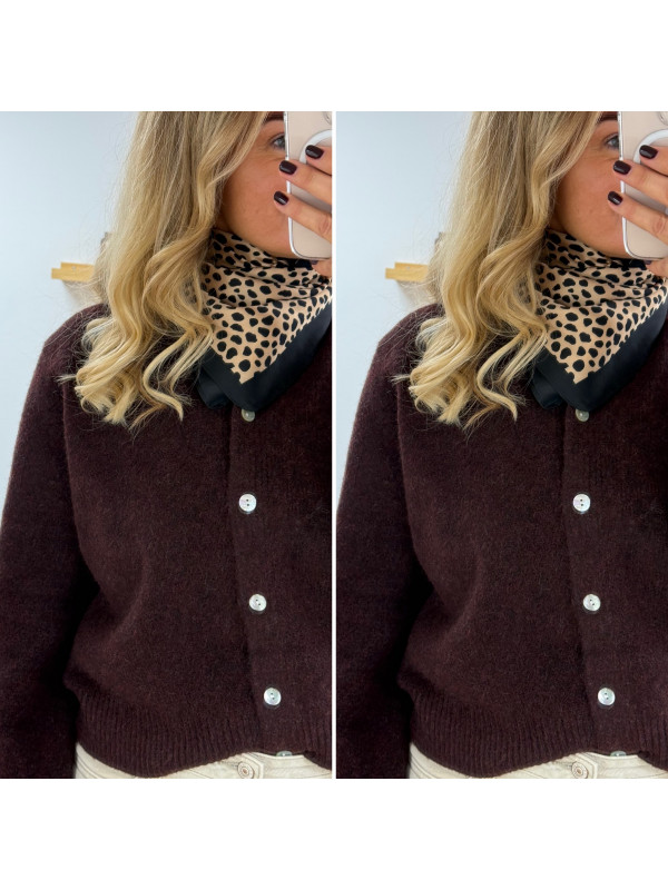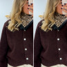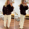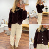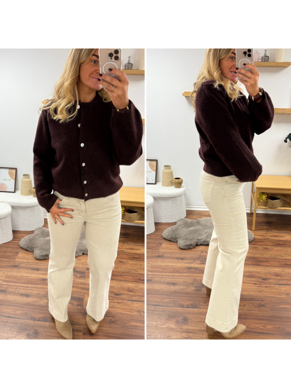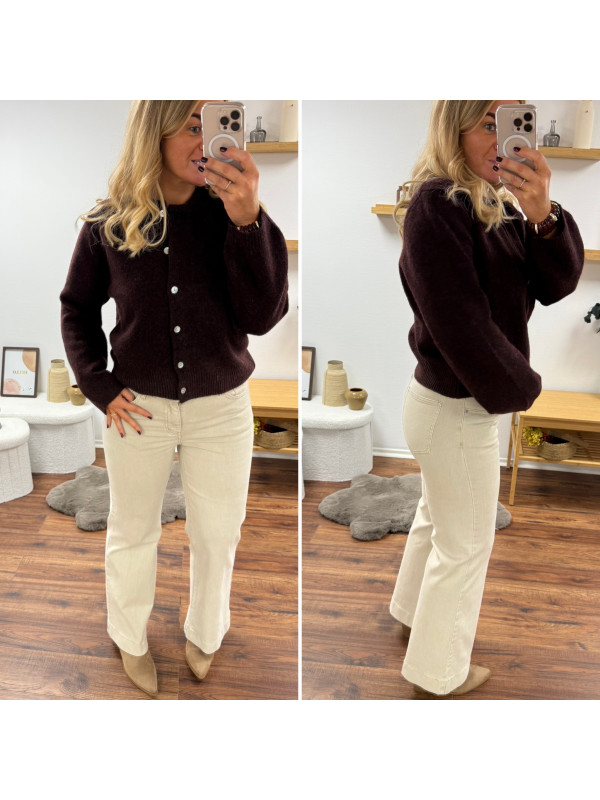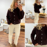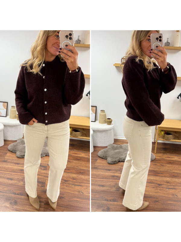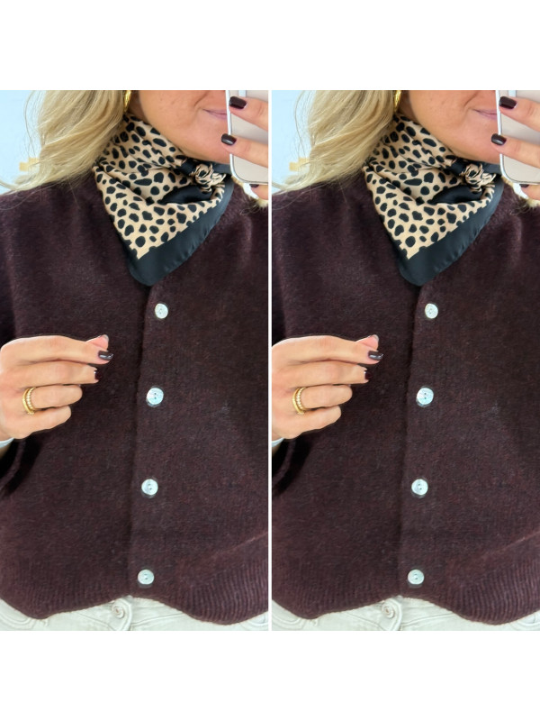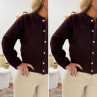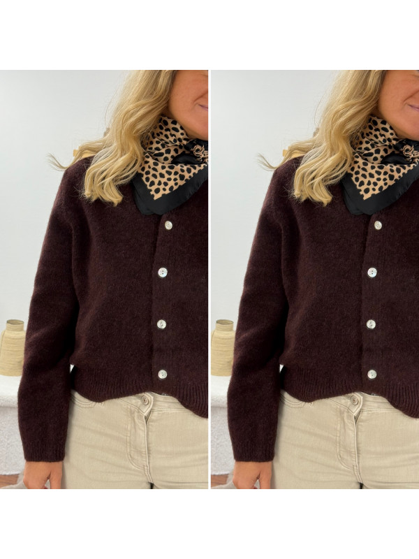 Gilet épais bordeaux/chocolat avec boutons nacrés et manches évasées