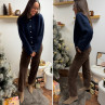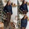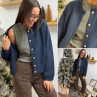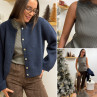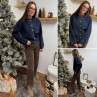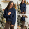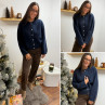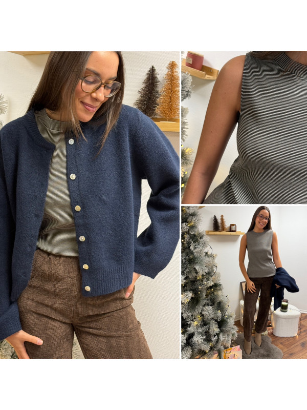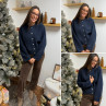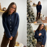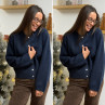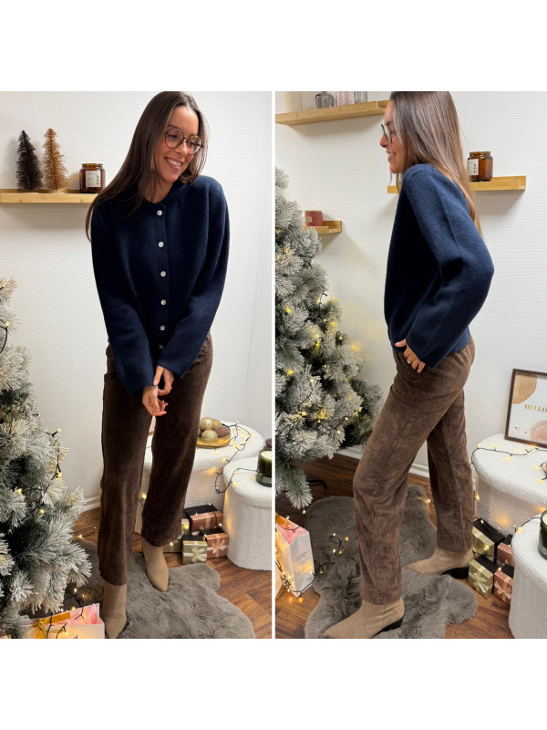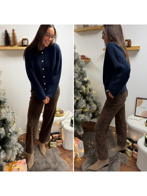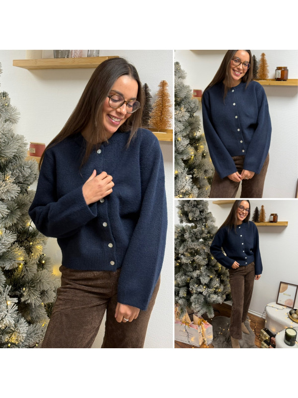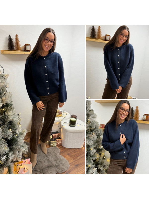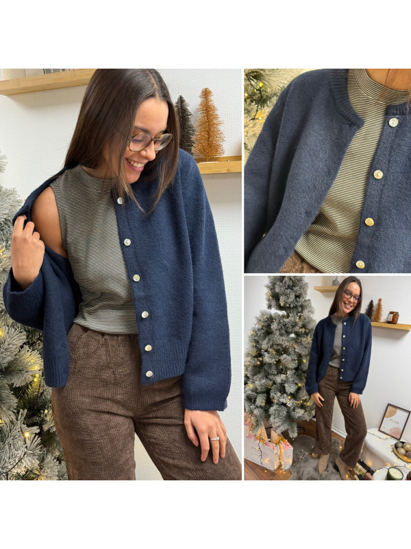 Gilet épais bleu marine avec boutons nacrés et manches évasées