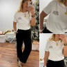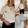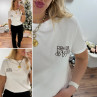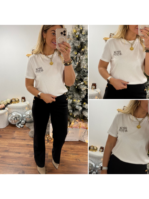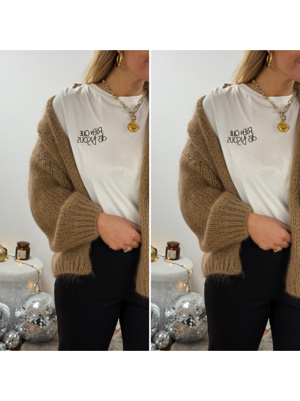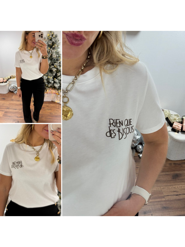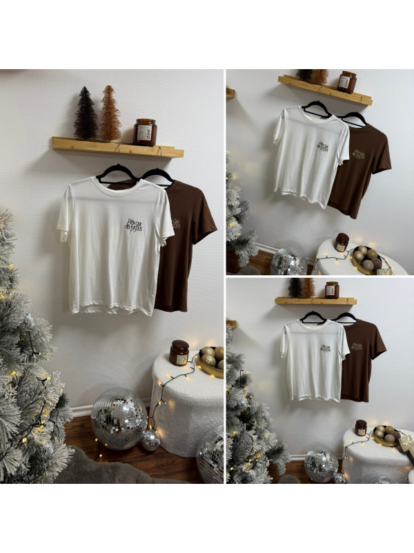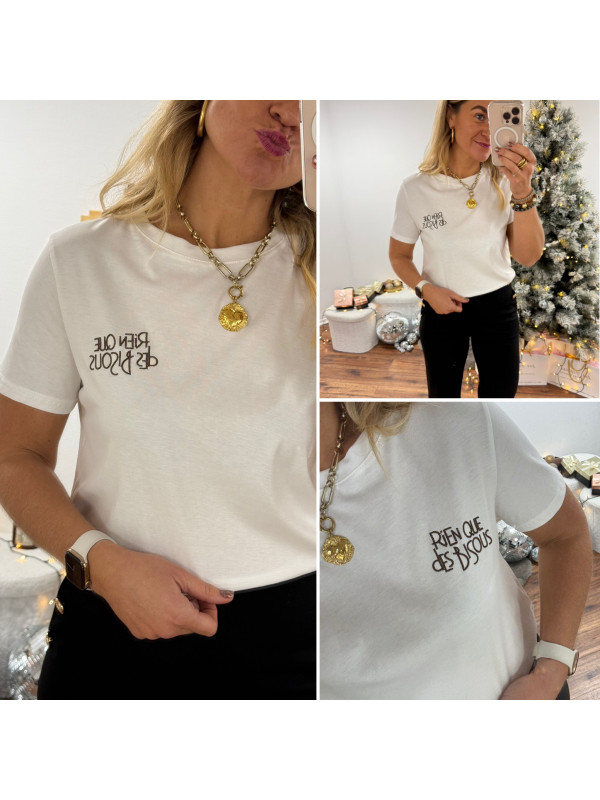 Tee shirt blanc avec inscription "rien que des bisous" chocolat