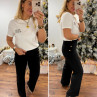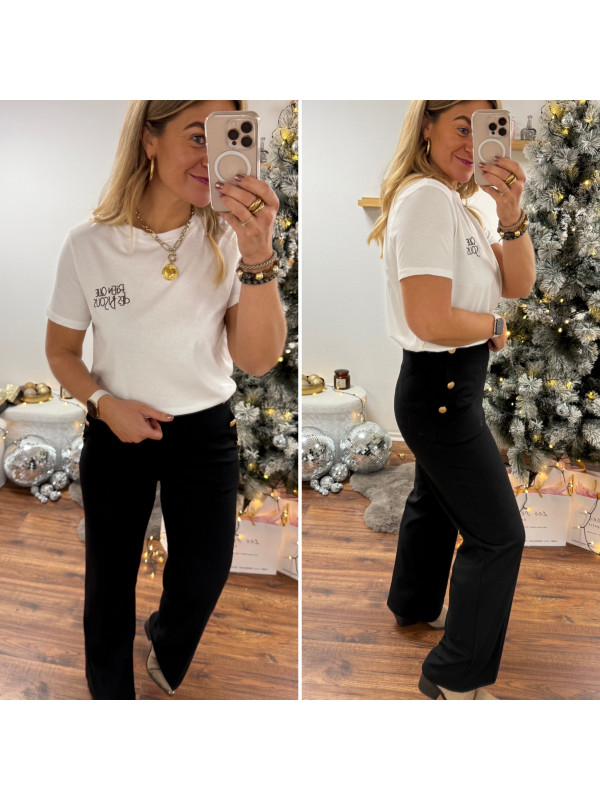 Pantalon fluide noir avec boutons dorés sur les côtés Le S...
