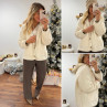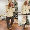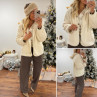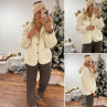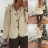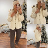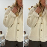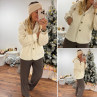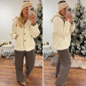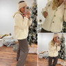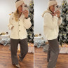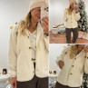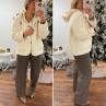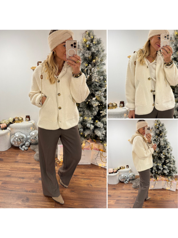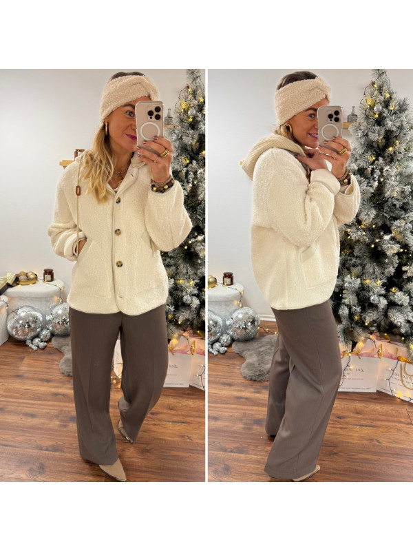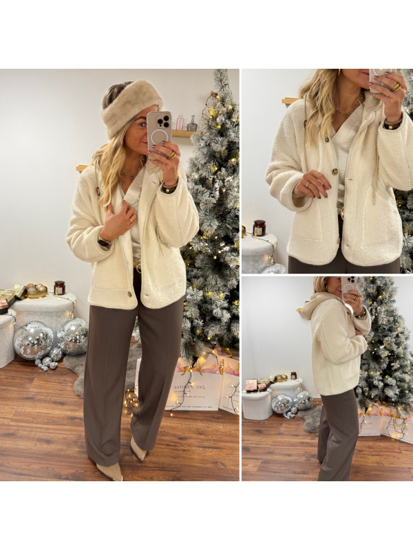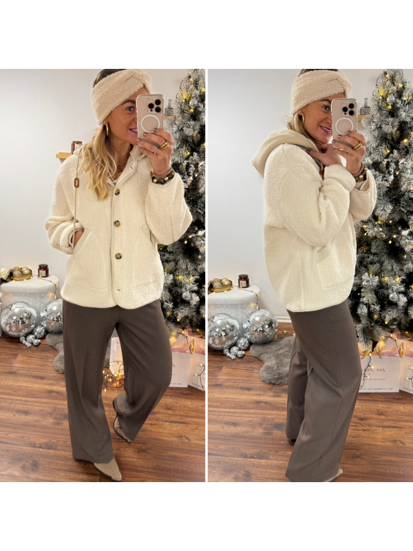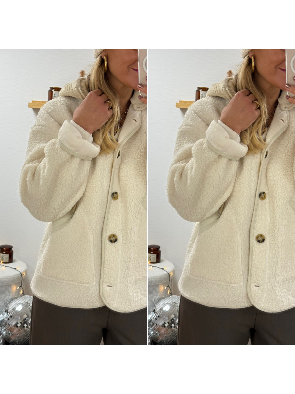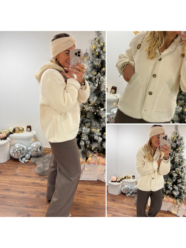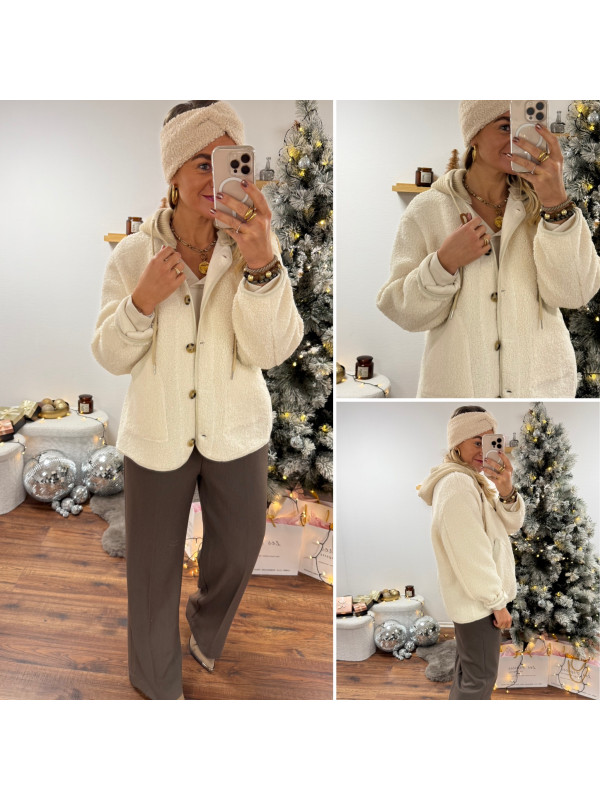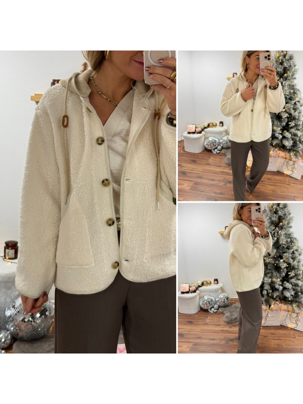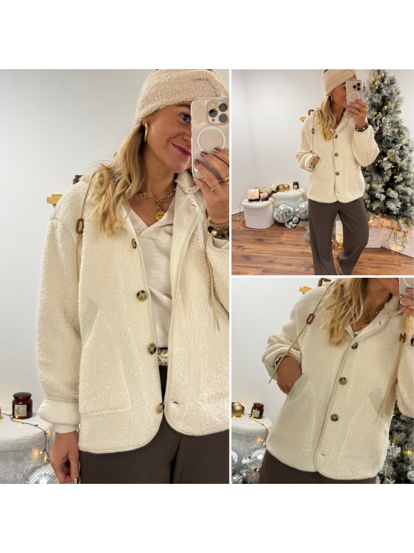 Veste à bouclettes crème avec capuche en maille écrue amovible