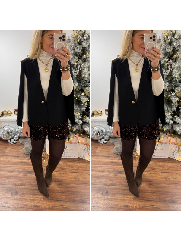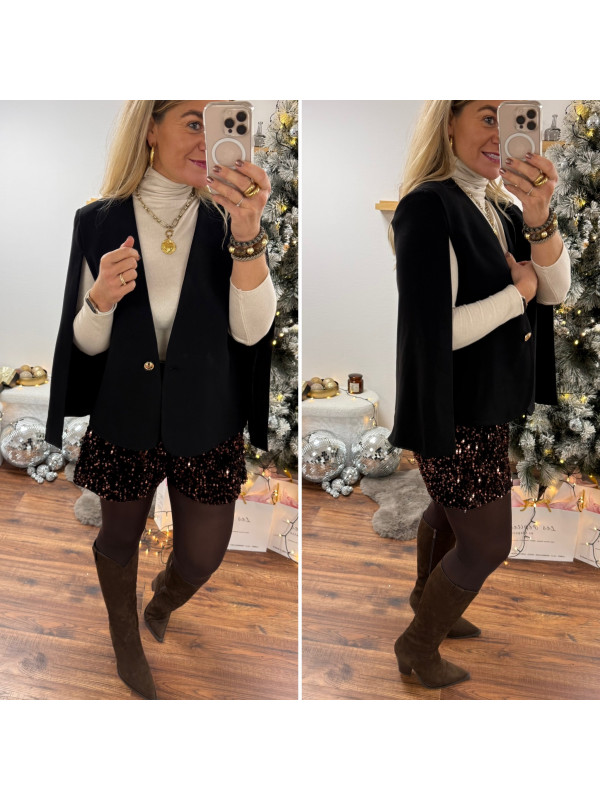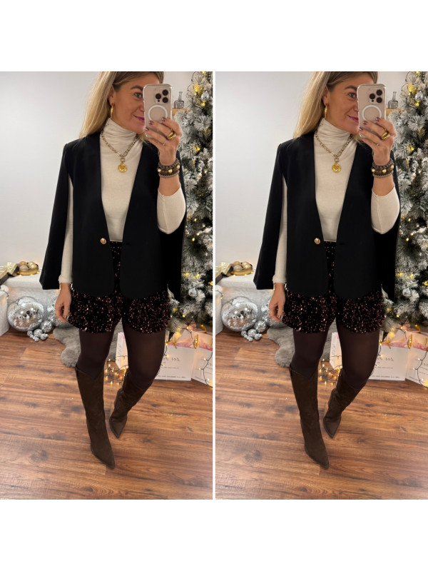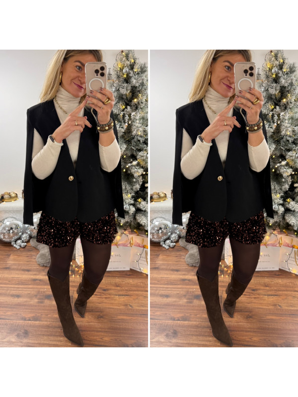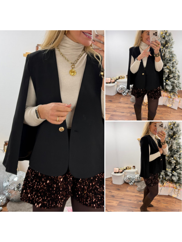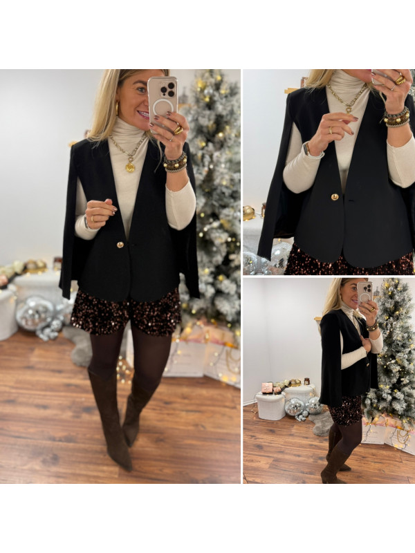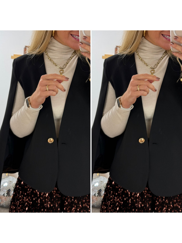 Blazer cape noir avec bouton doré
