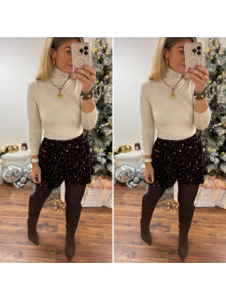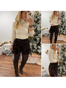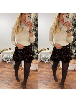 Short noir avec plis sur le devant et ceinture marron en...