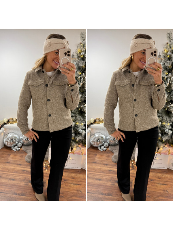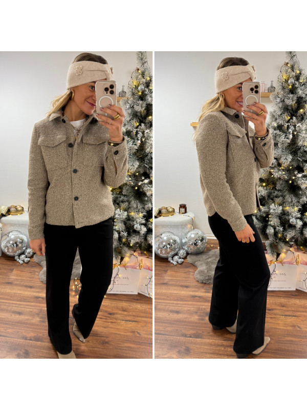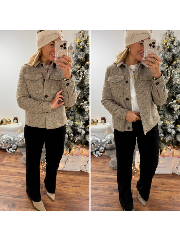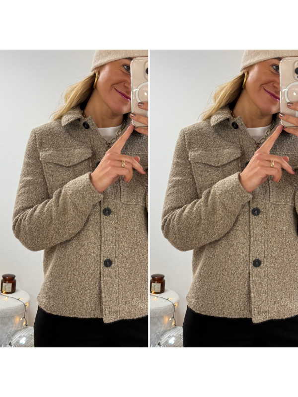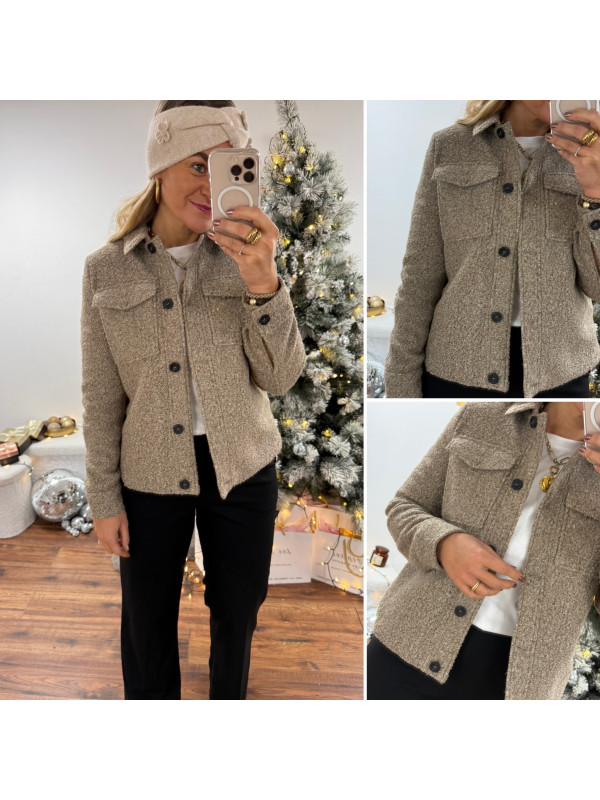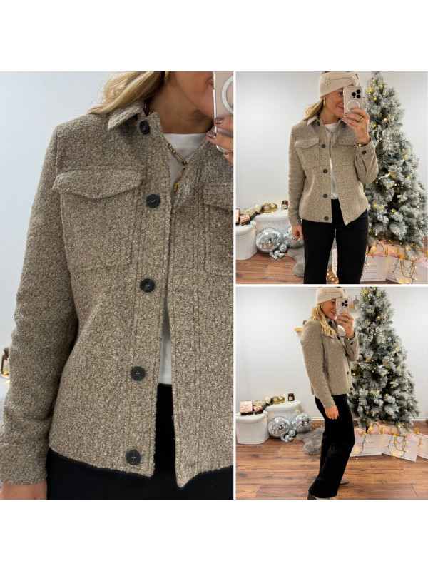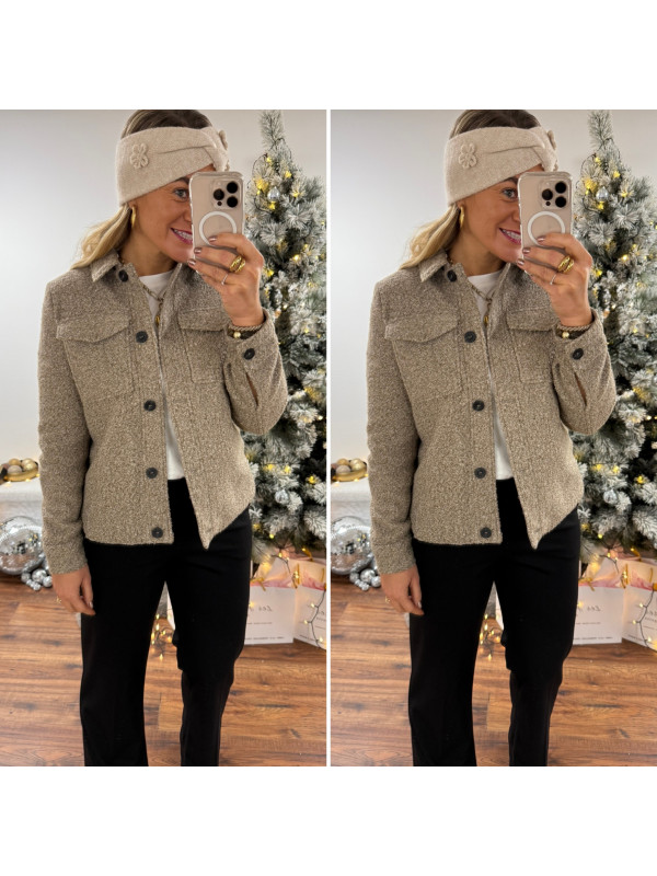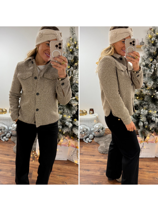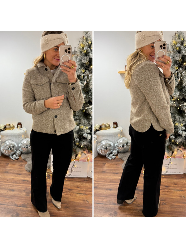 Veste façon laine bouillie avec bouclettes taupe (du 36 au 46)