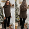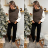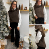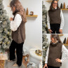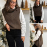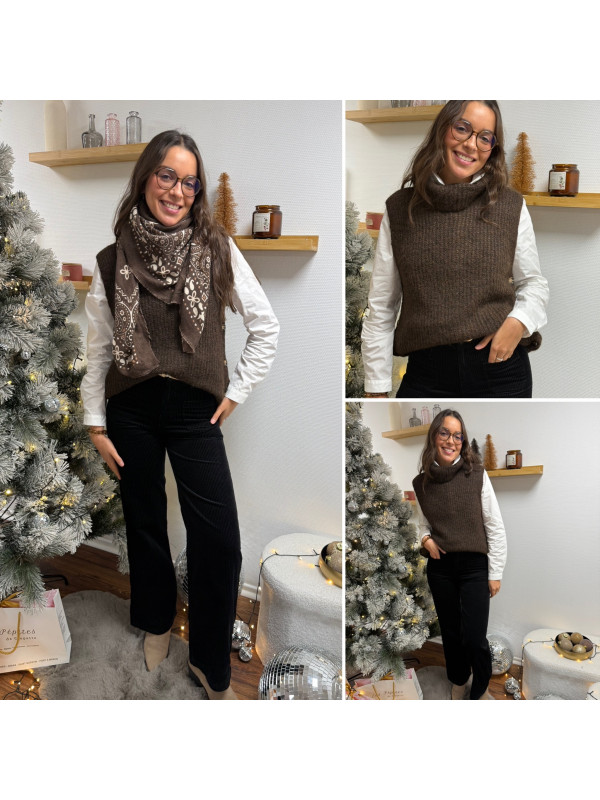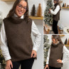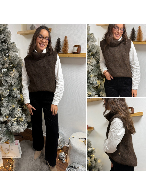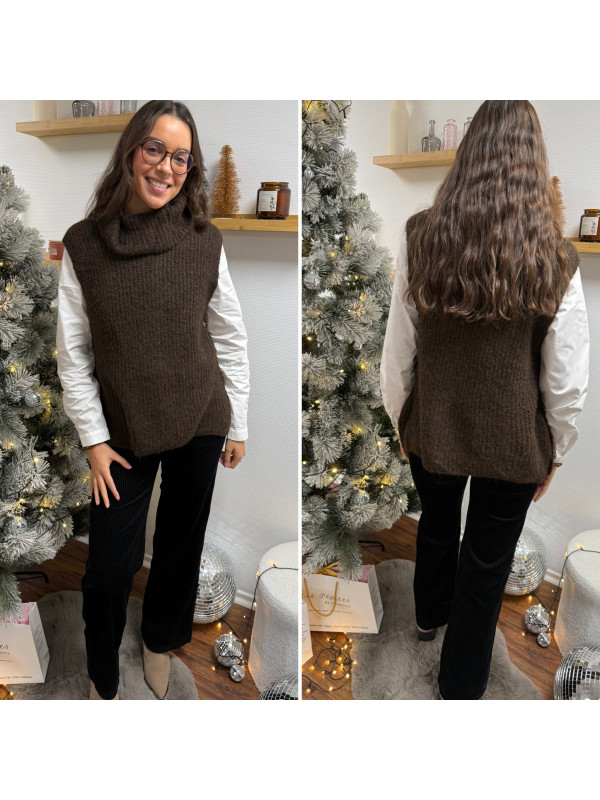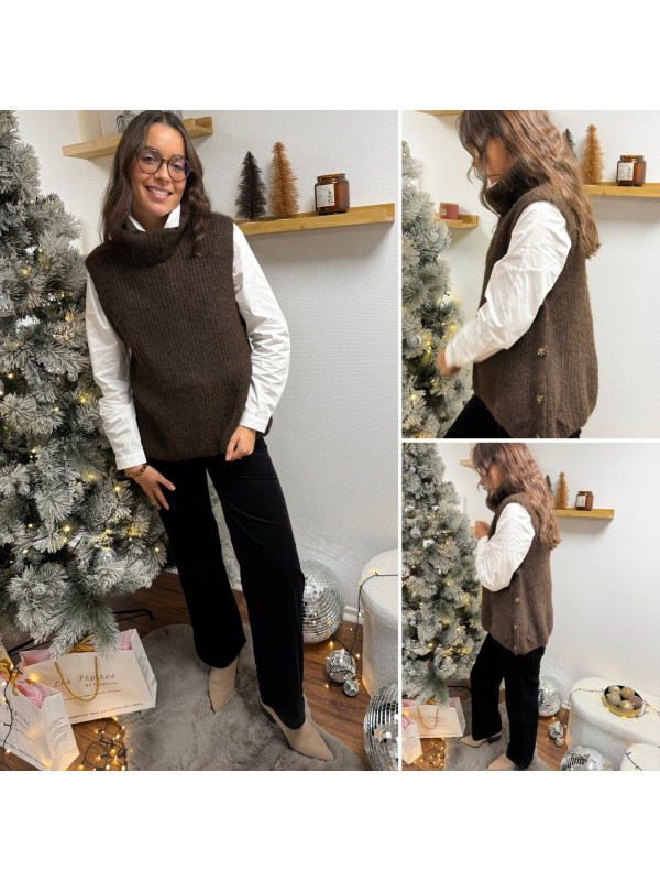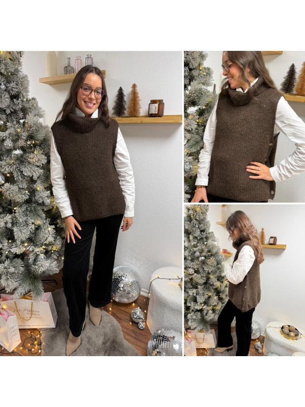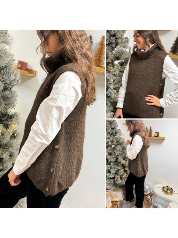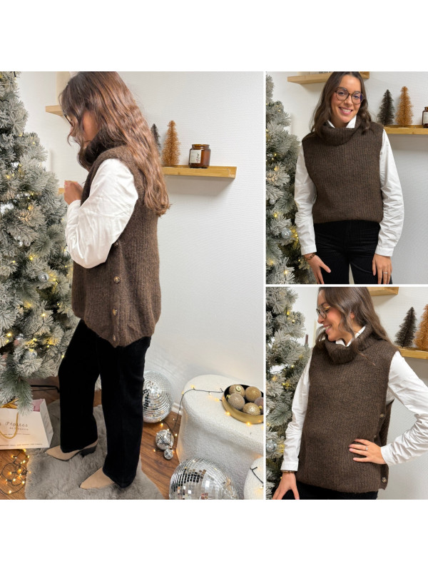 Pull col roulé sans manches chocolat avec boutons sur le côté