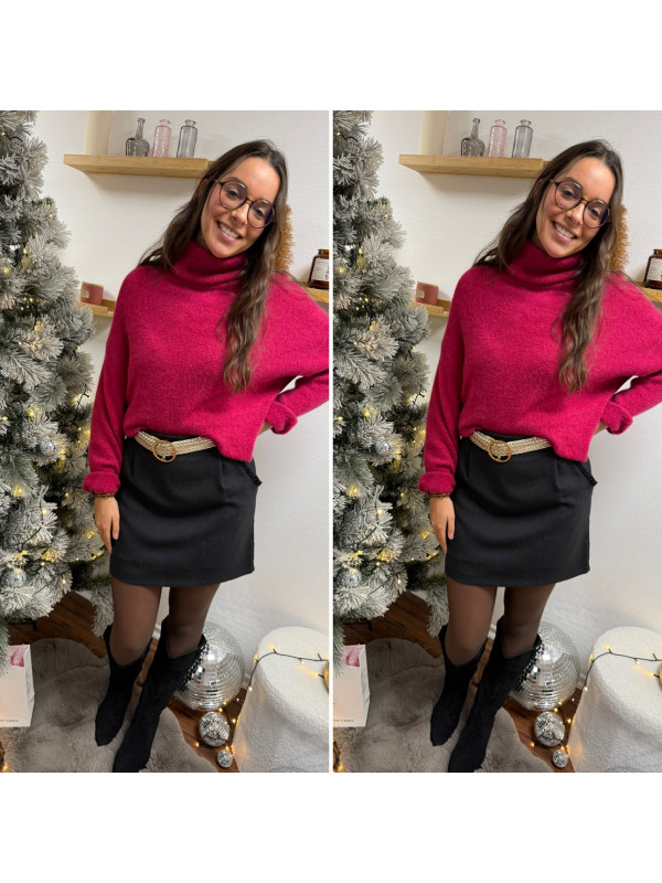 Jupe courte noire avec strass et volants sur les poches Le S...