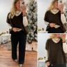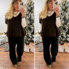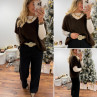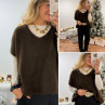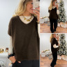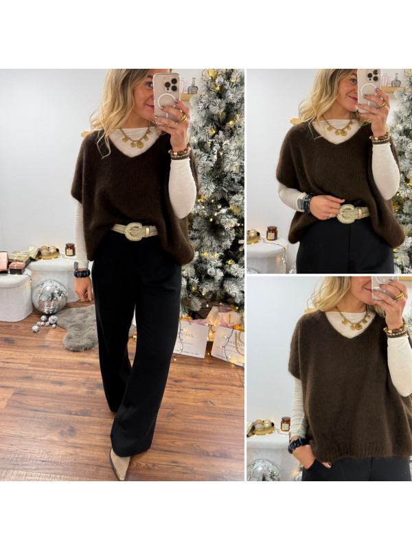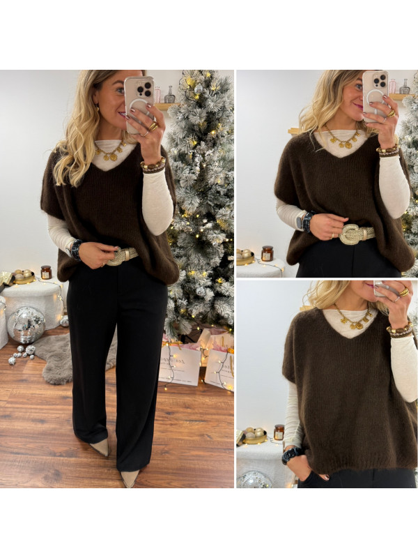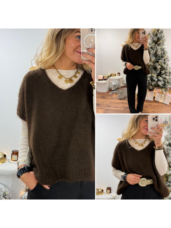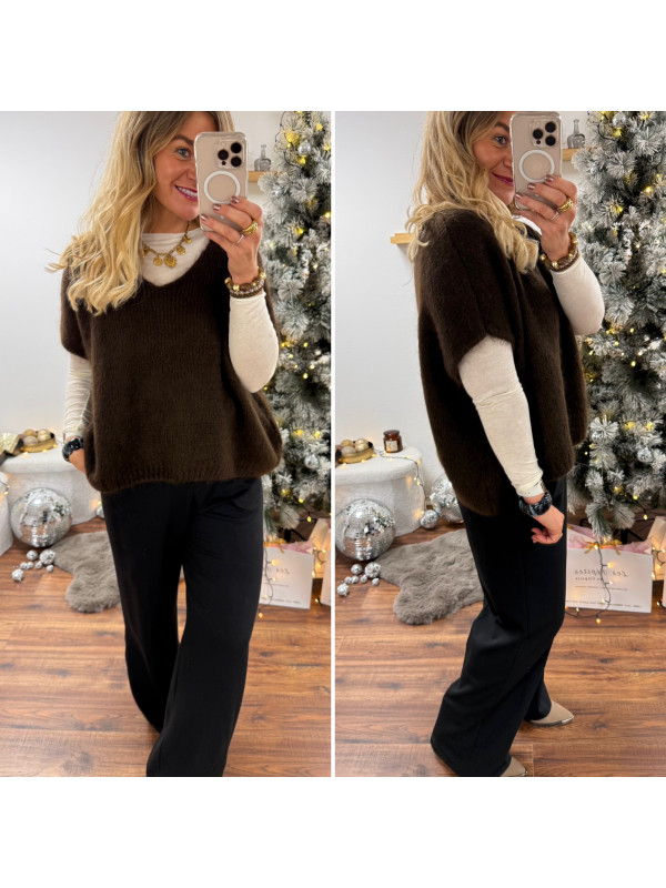 Pull sans manches col V en mohair chocolat