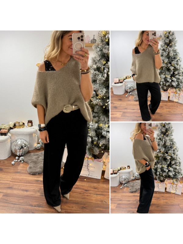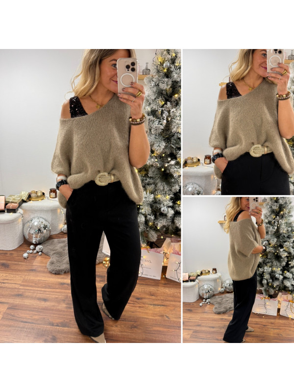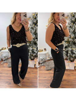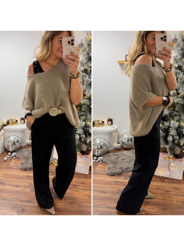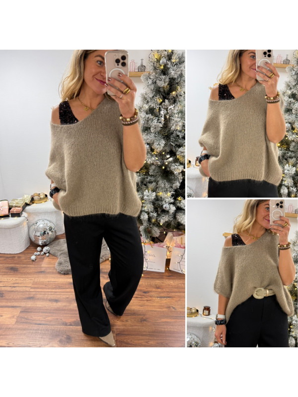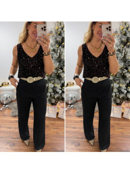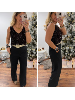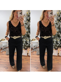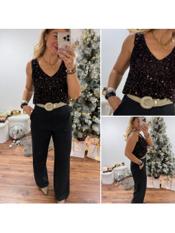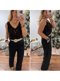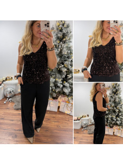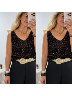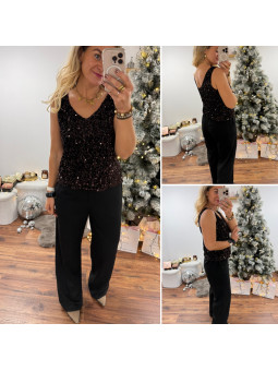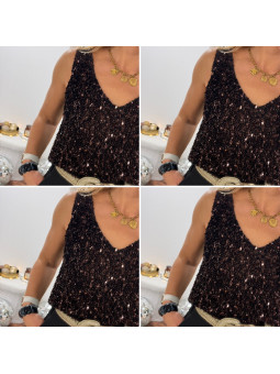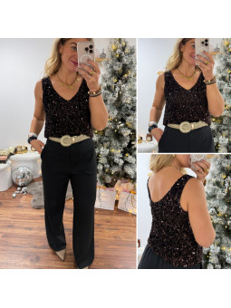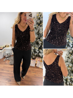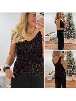 Top col V devant et dans le dos chocolat à sequins et perles...