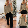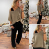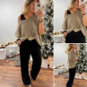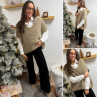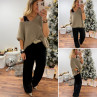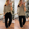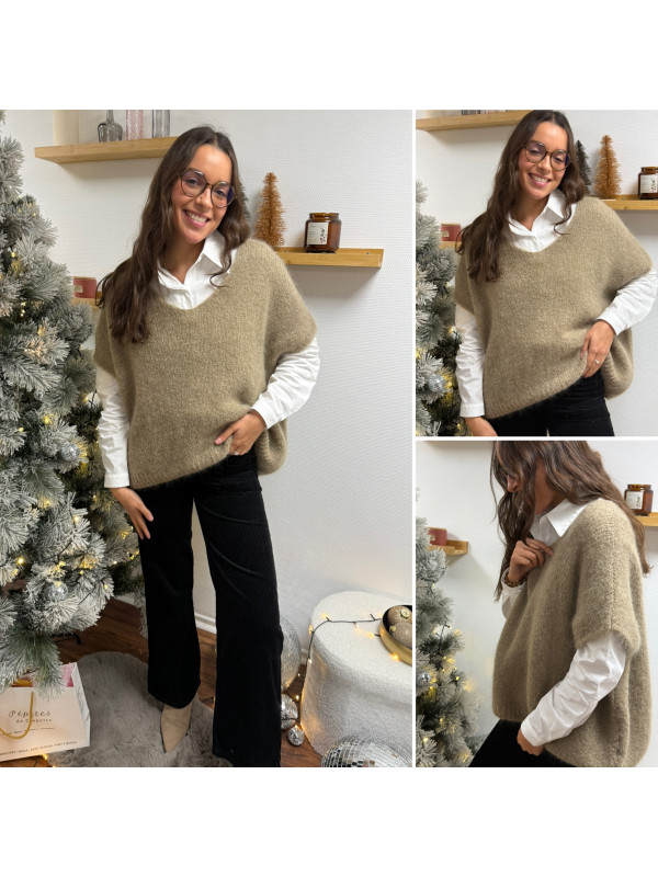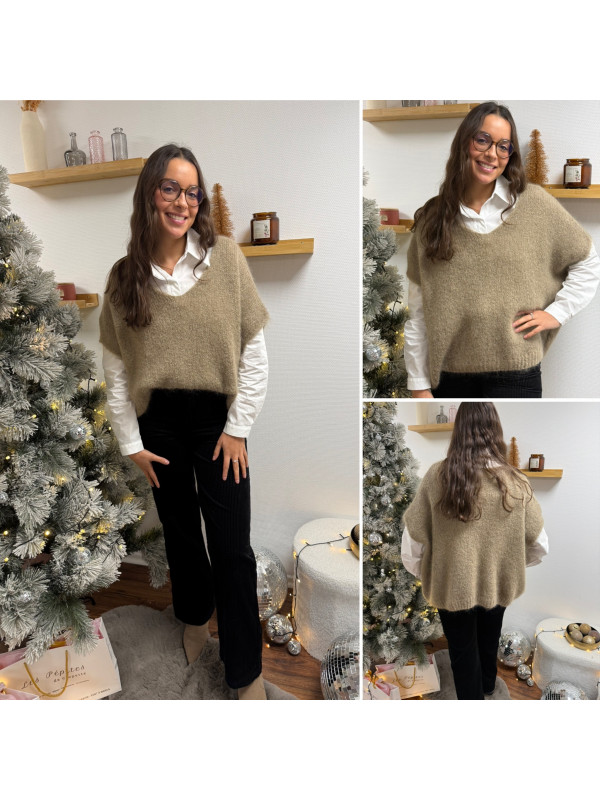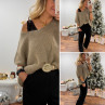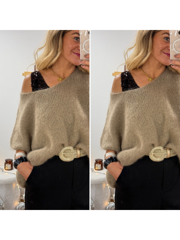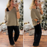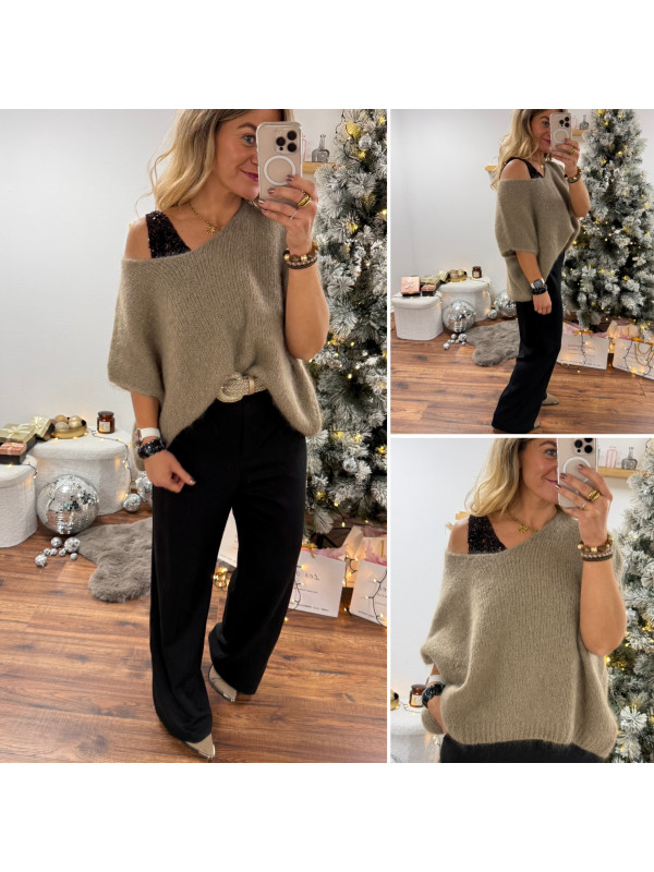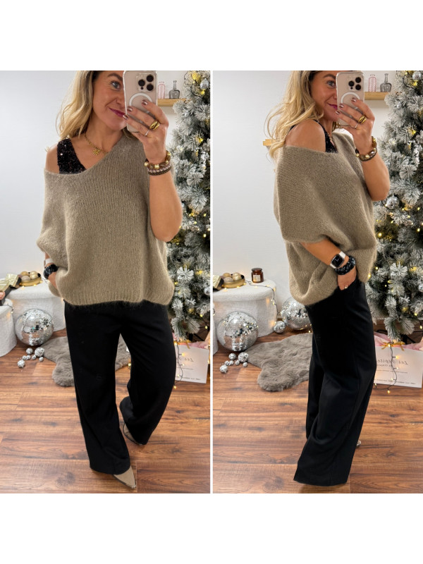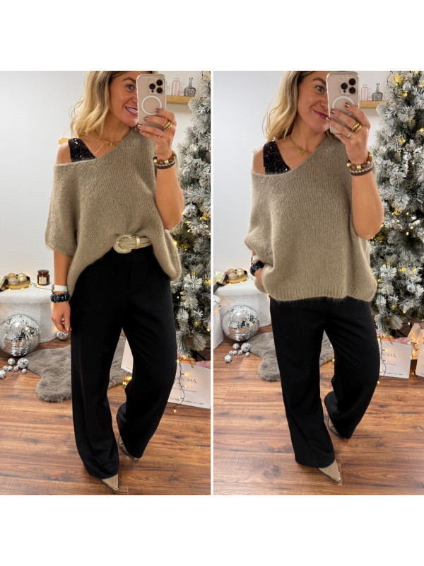 Top col V devant et dans le dos chocolat à sequins et perles...