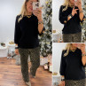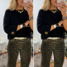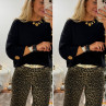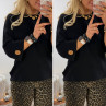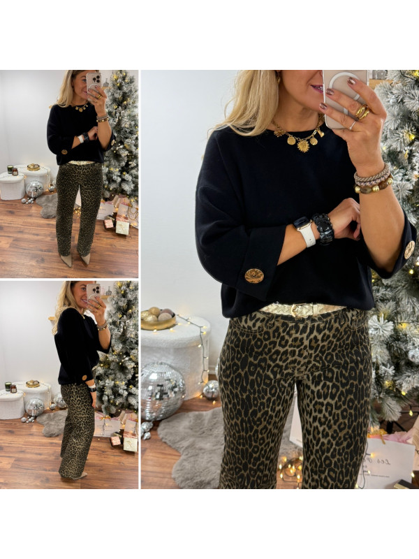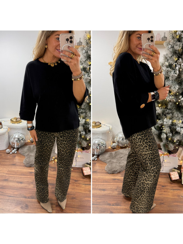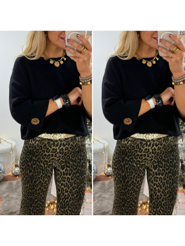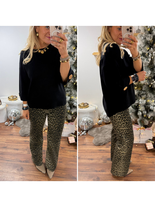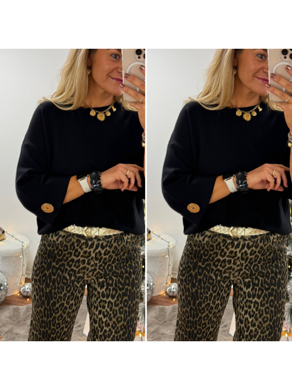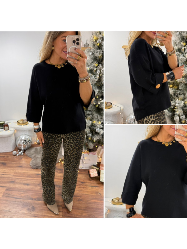 Pull à manches trois quarts noir avec boutons dorés sur les manches