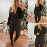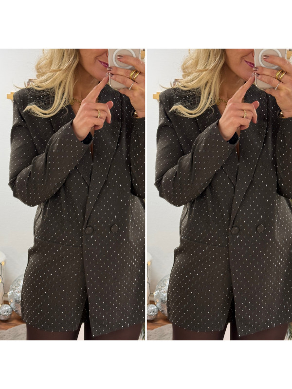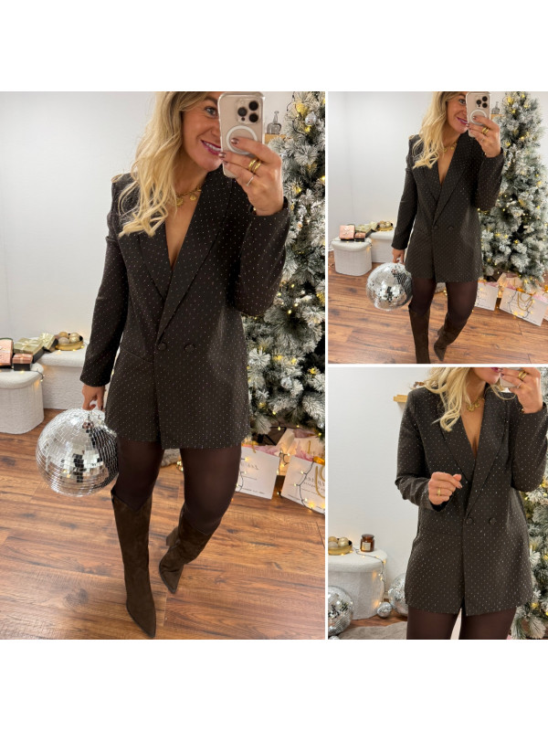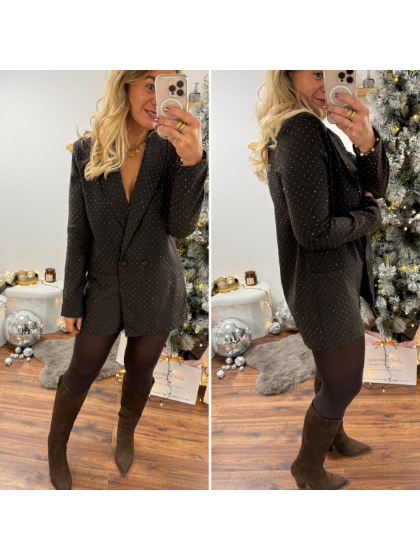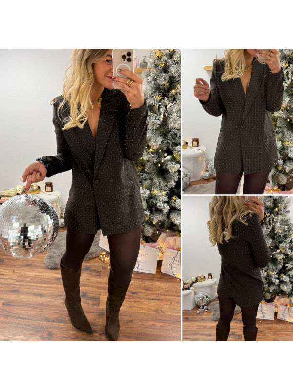 Blazer combi-short chocolat col V avec strass