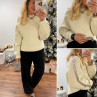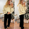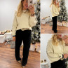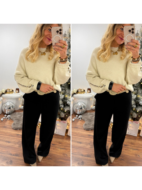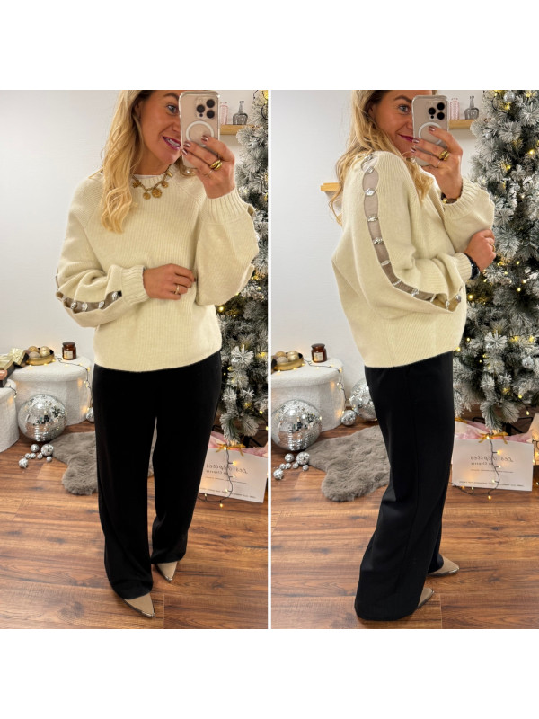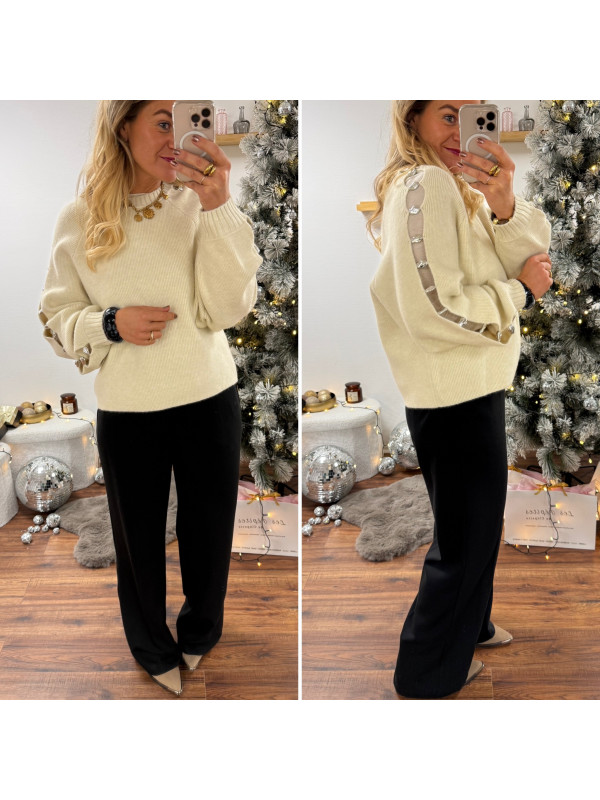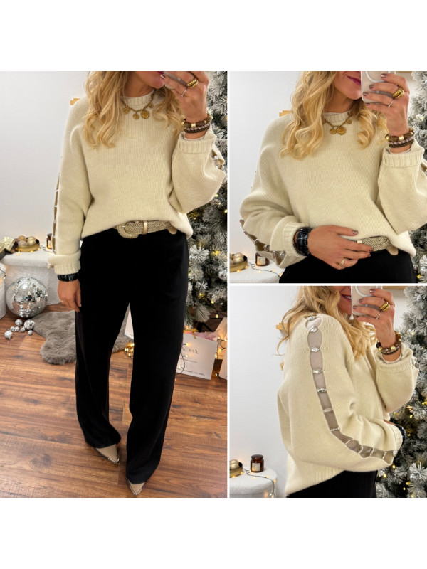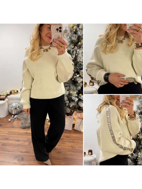 Pull écru avec ouverture sur les manches et bijoux argentés