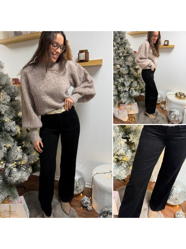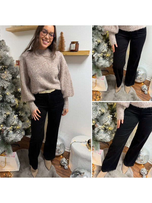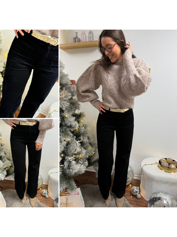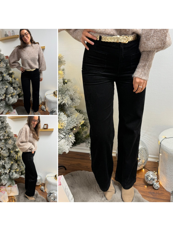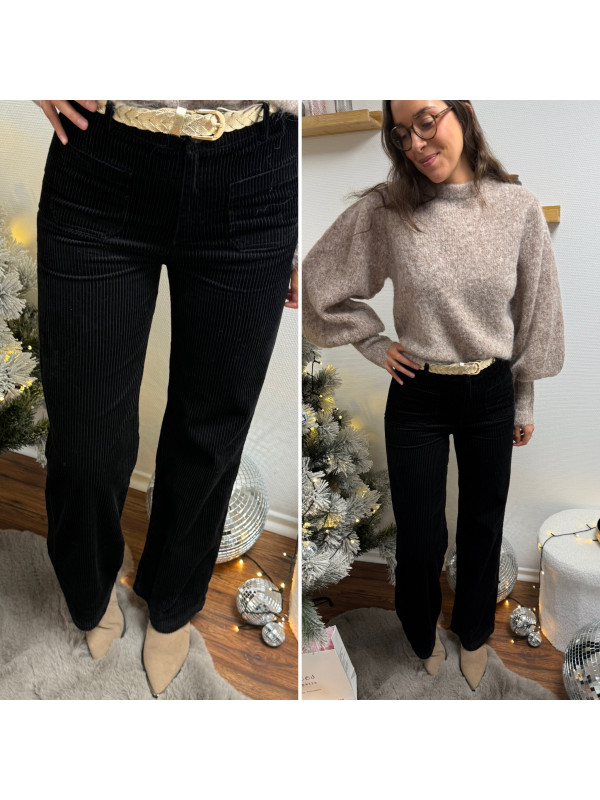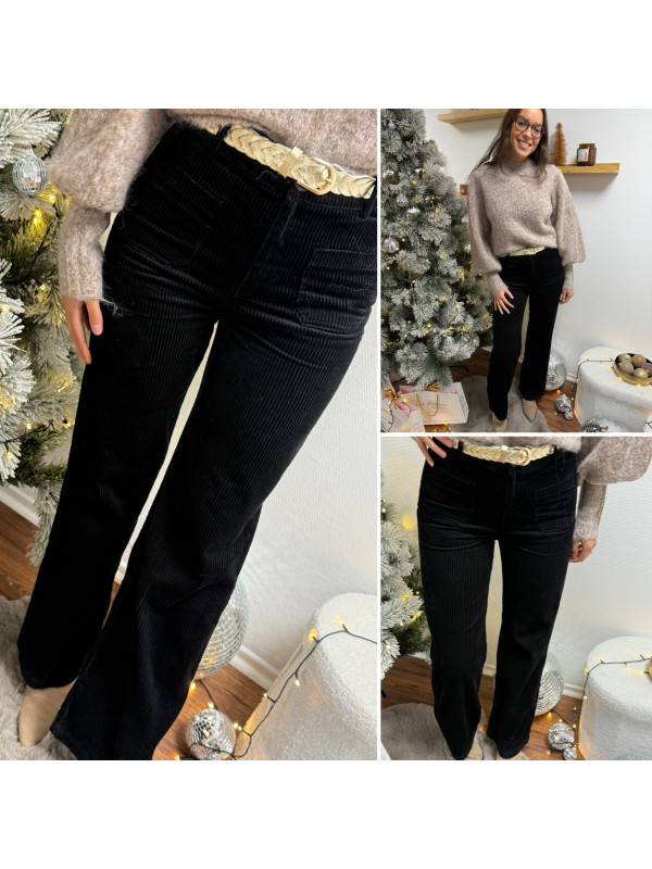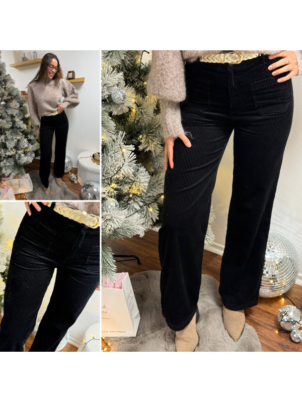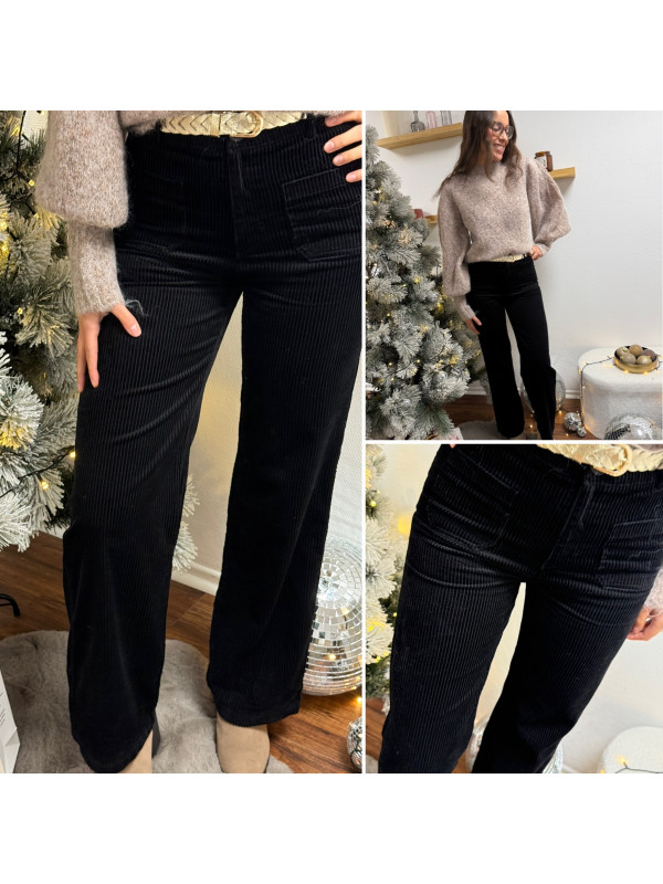 Pantalon en gros velours noir avec poches plaquées sur le devant