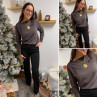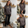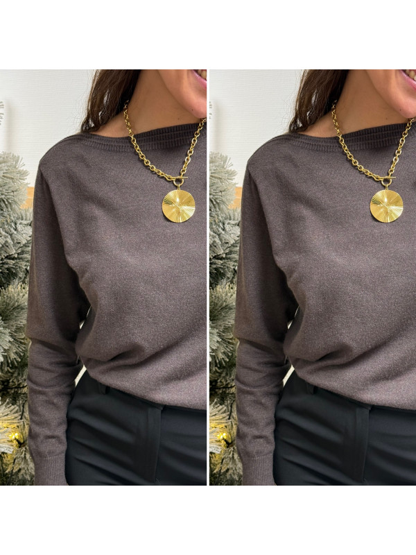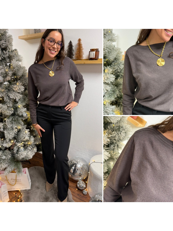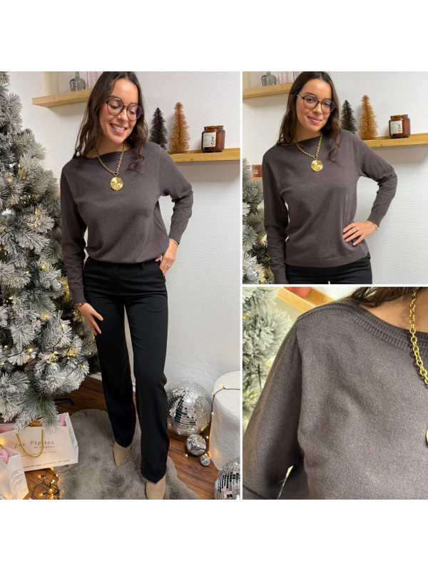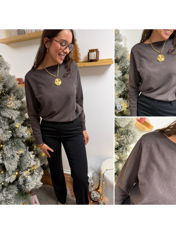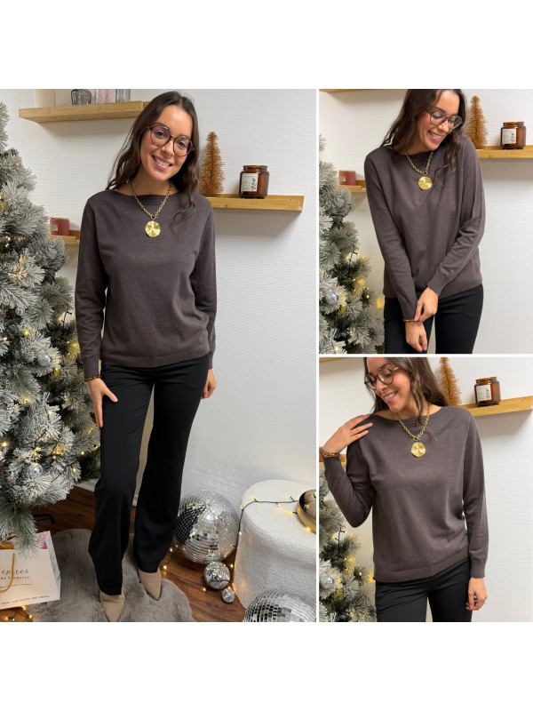 Pull chocolat avec détail côtelé sur le col bateau (du 36 au 46)