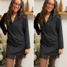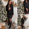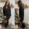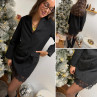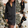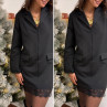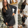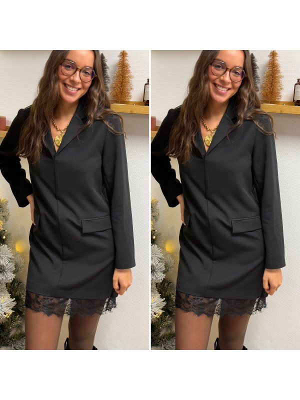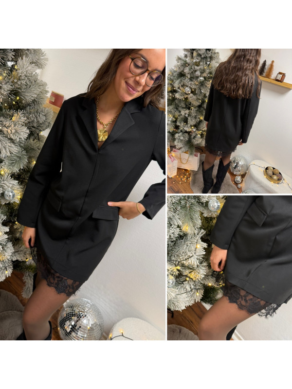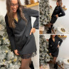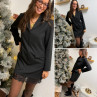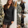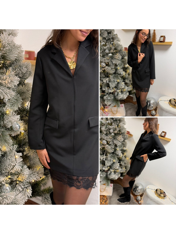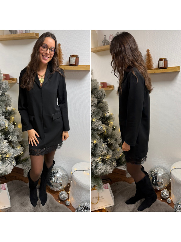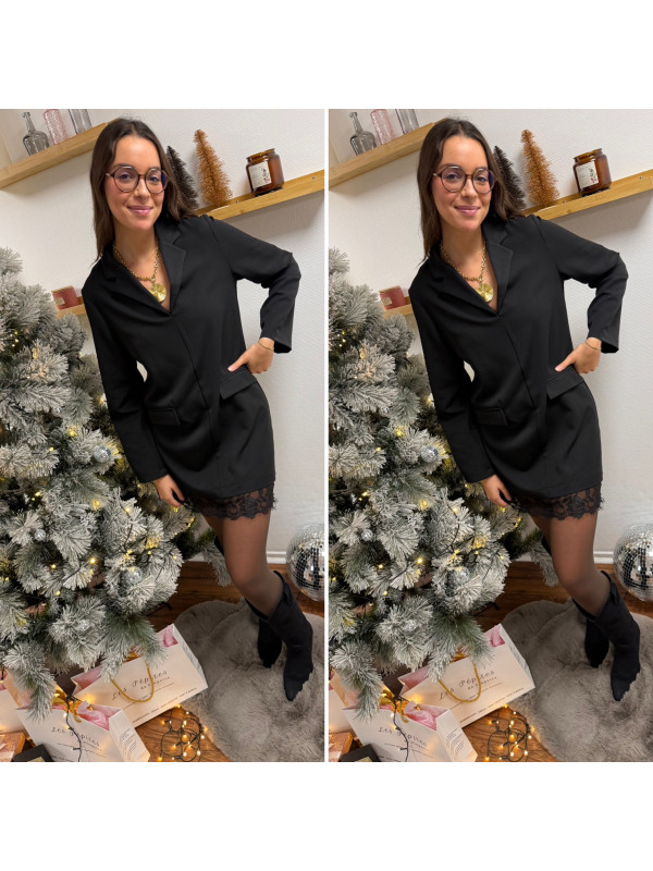 Robe noire avec col V, fausses poches et le bas en dentelle