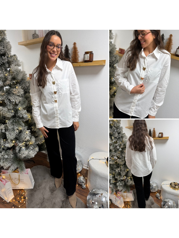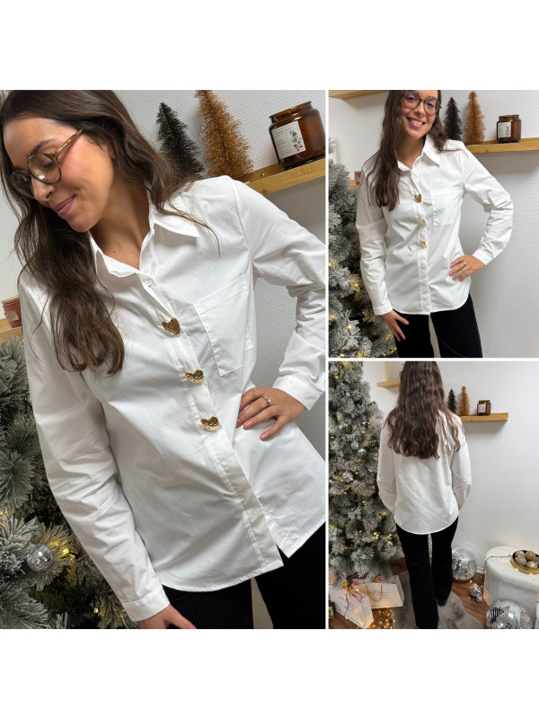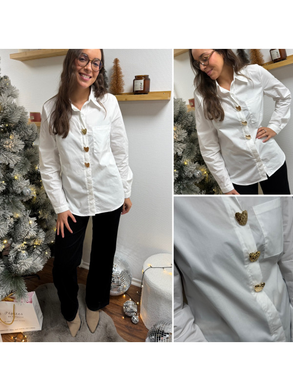 Chemise blanche avec poche plaquée et boutons coeur dorés