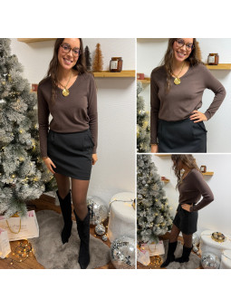 Jupe courte noire avec strass et volants sur les poches Le S...