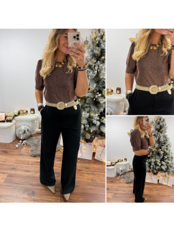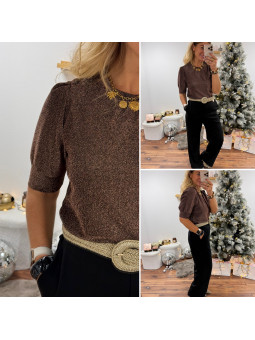 Blouse col V soyeuse taupe Le S équivaut au 36 et le M au 38,...