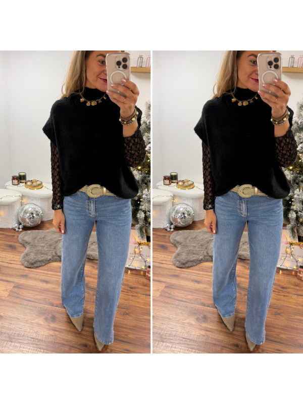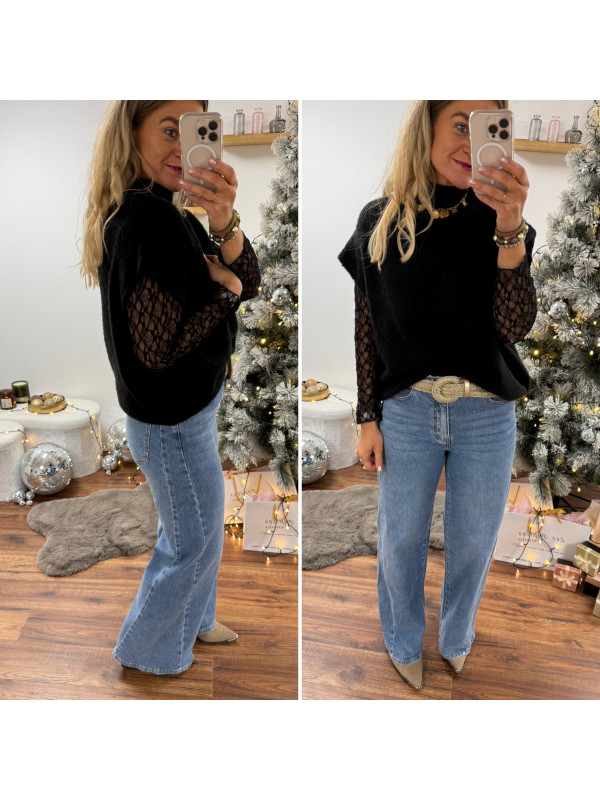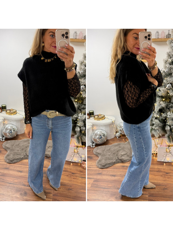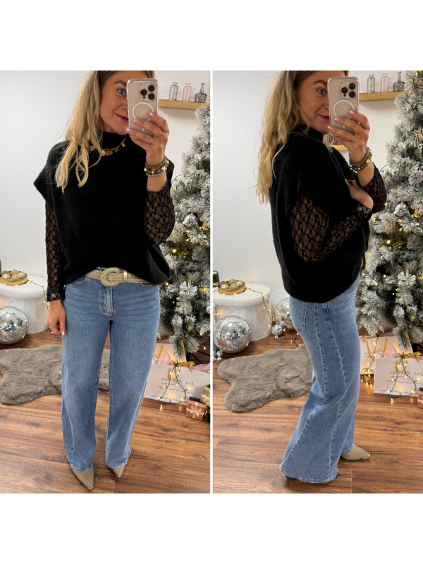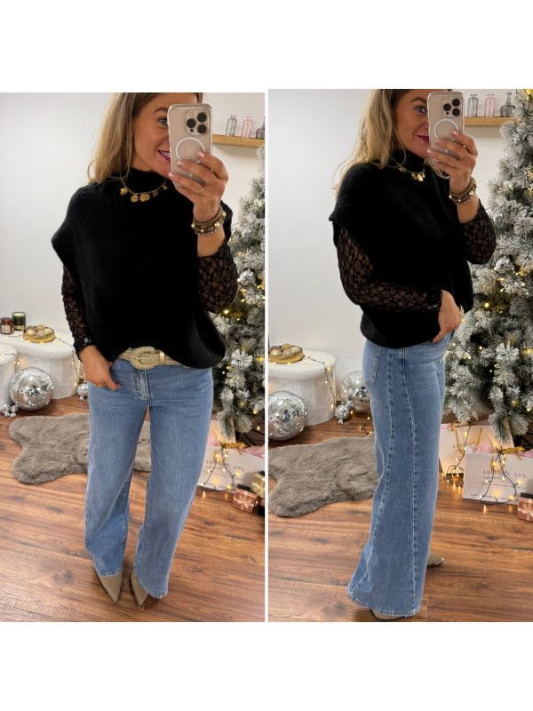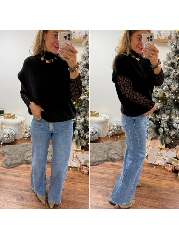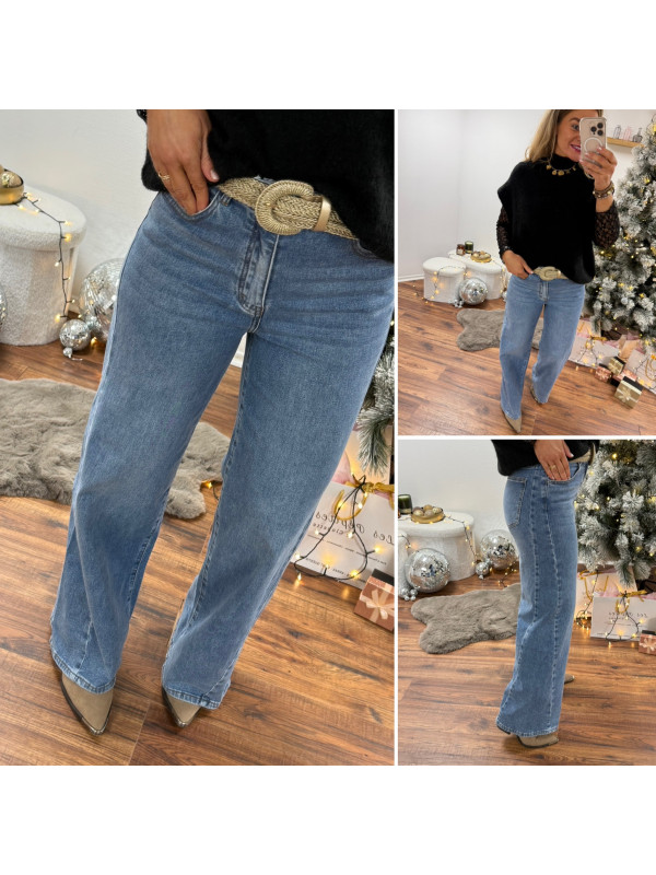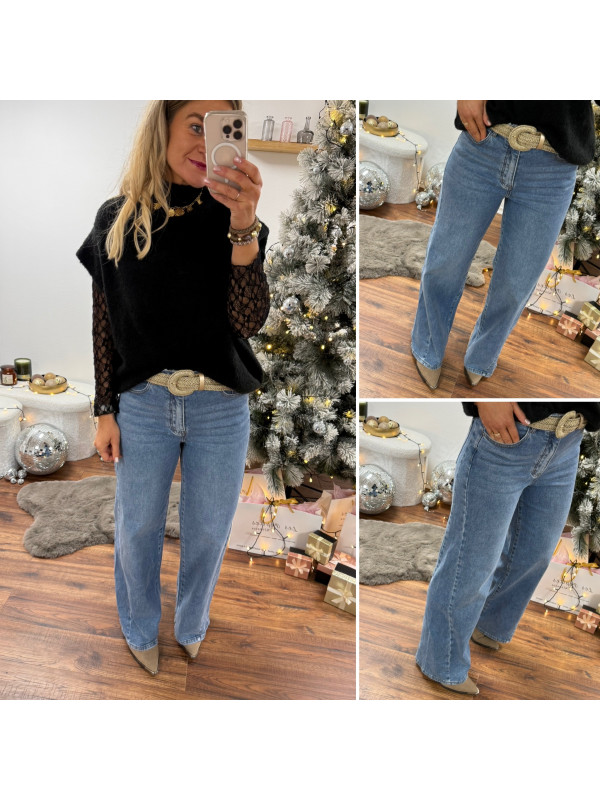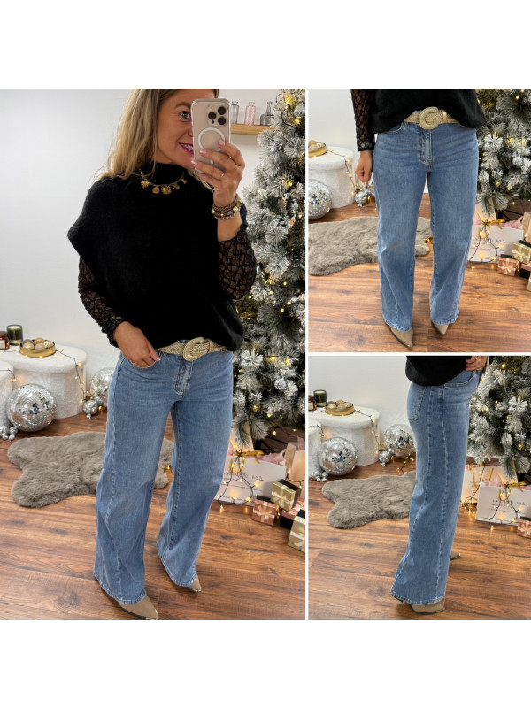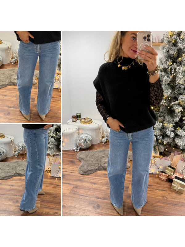 Jean palazzo bleu clair avec couture qui revient sur le devant