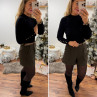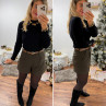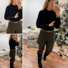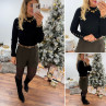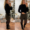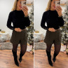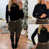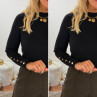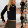 Pull en maille côtelée noire avec boutons dorés sur les manches