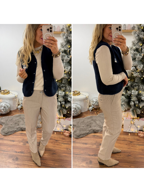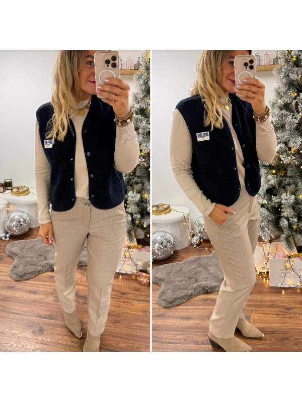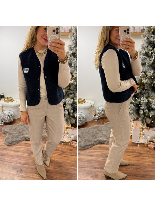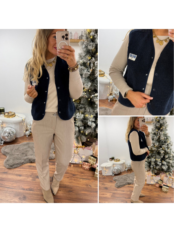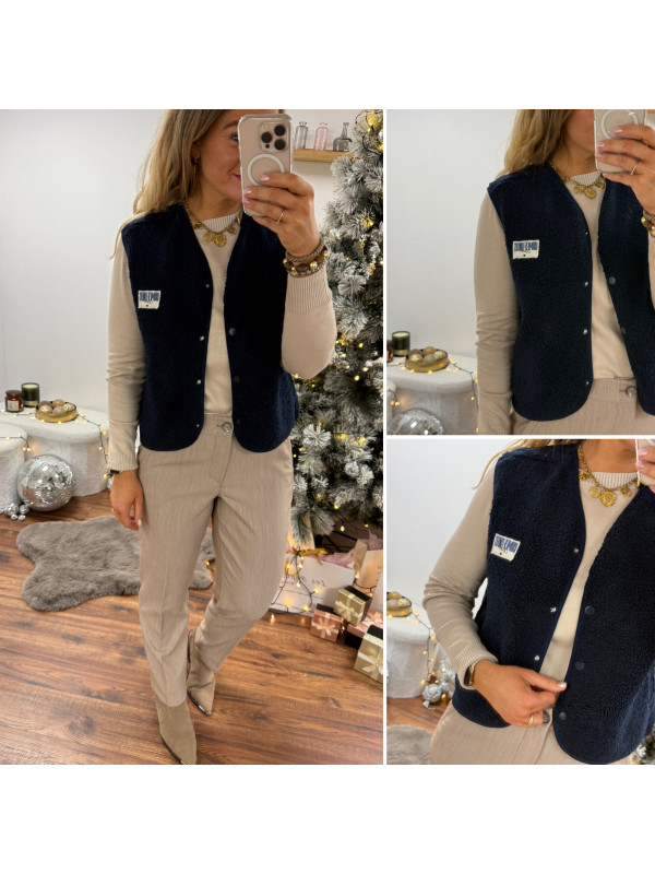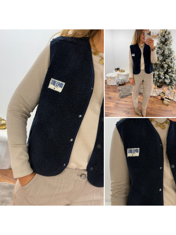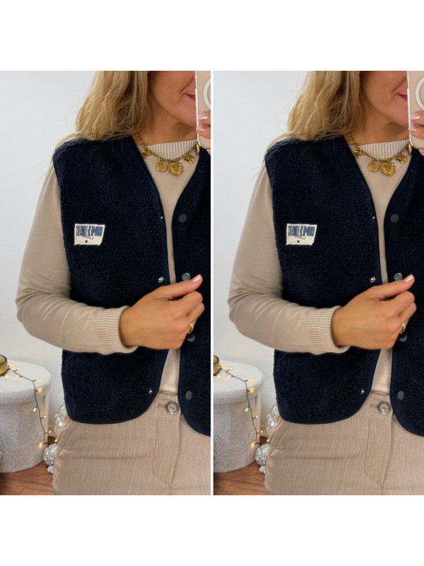 Veste en bouclettes sans manches bleu marine avec inscription "comfy lovers club"