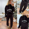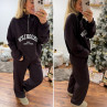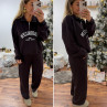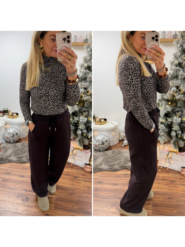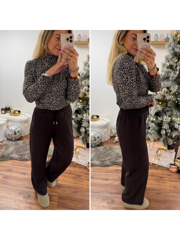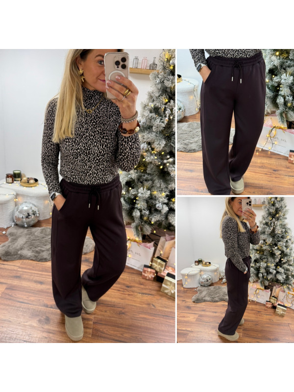 Pantalon souple et confortable style jogging couleur chocolat resserré à la taille par un lien
