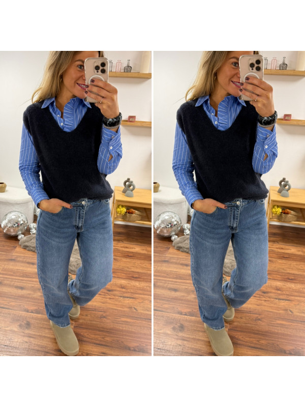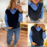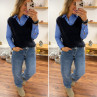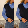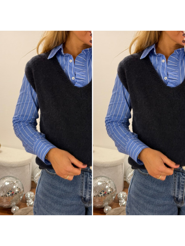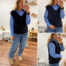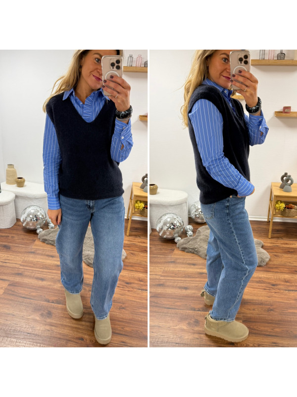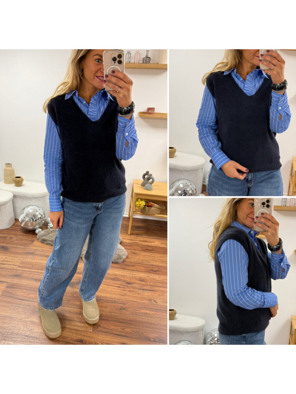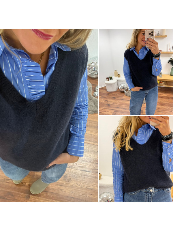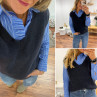 Pull sans manches en alpaga col V bleu marine