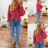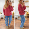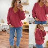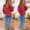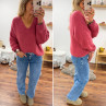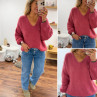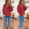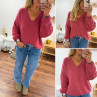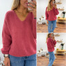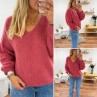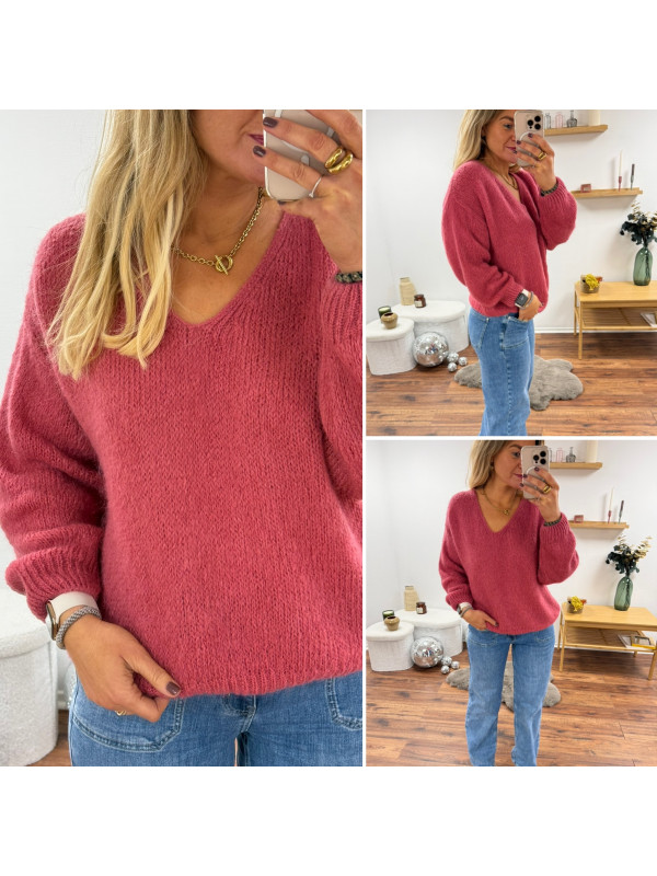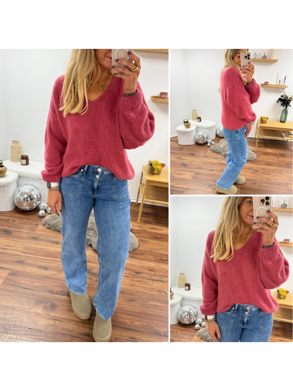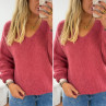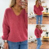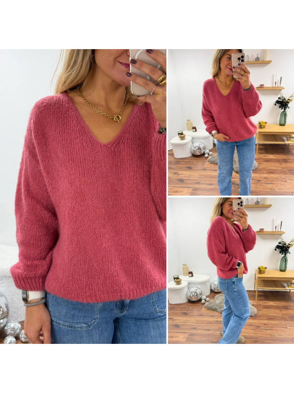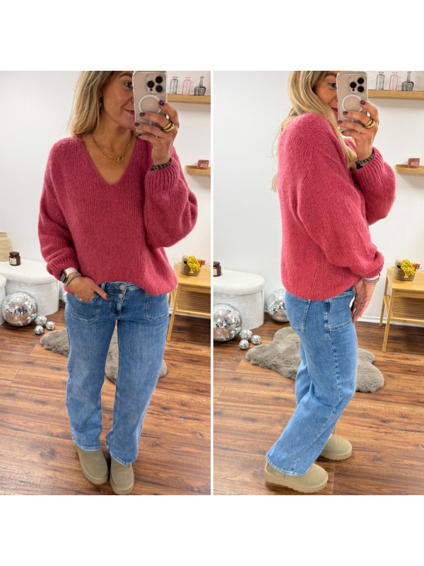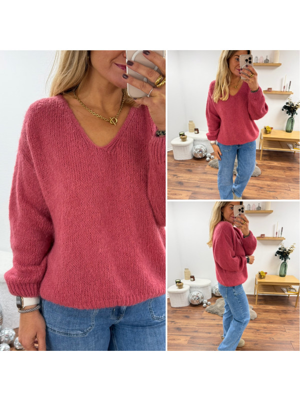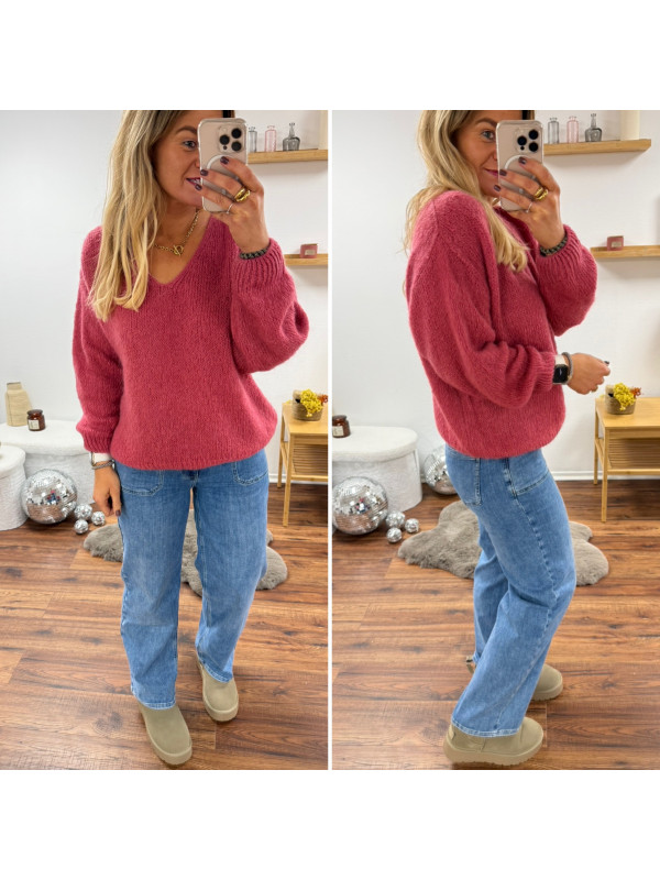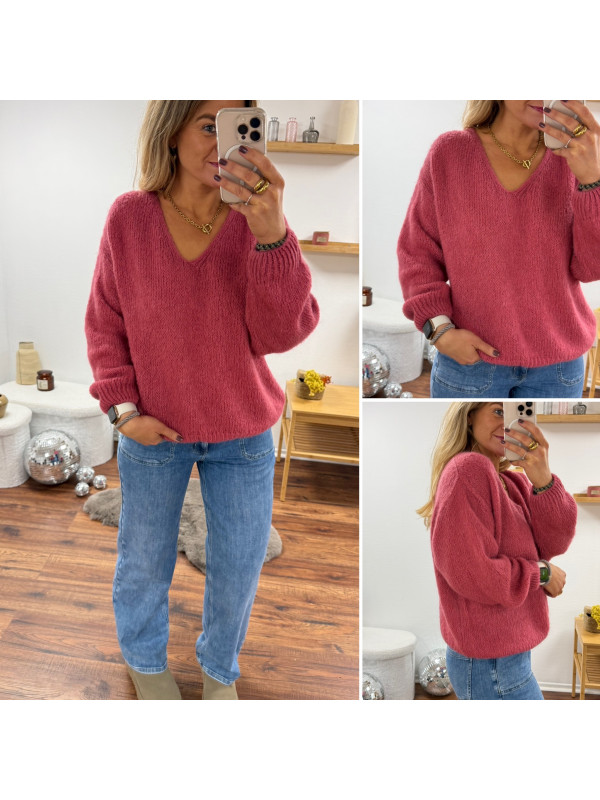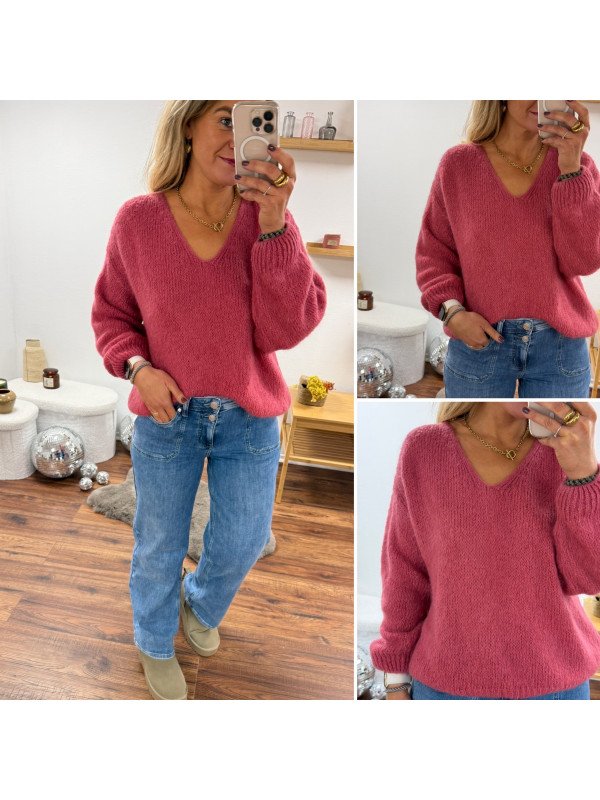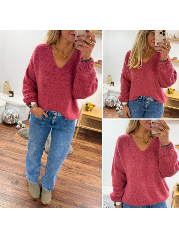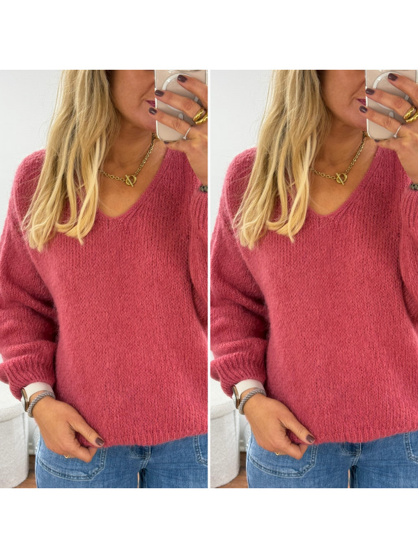 Pull bois de rose col V en mohair