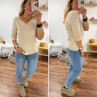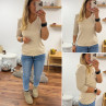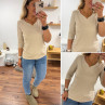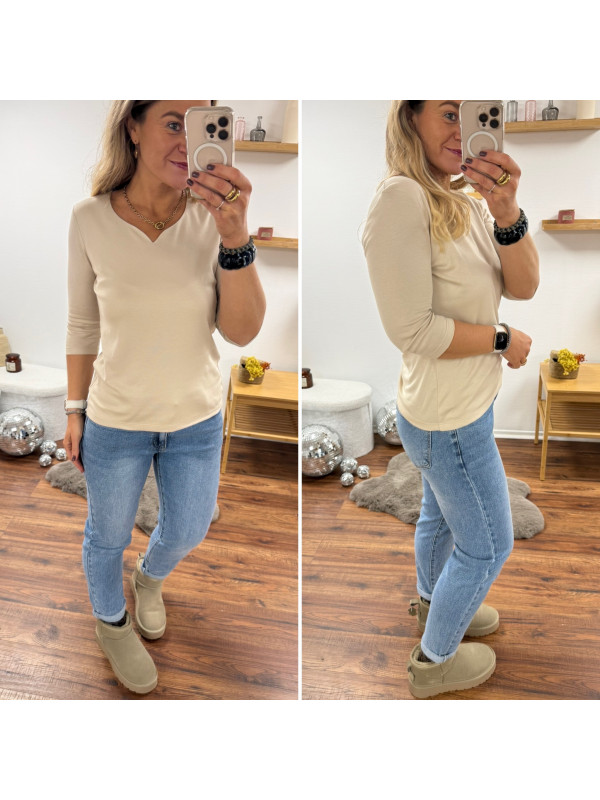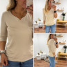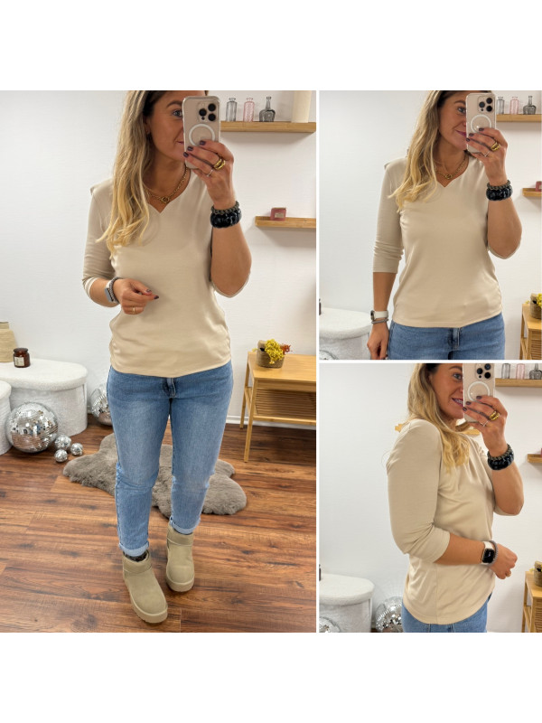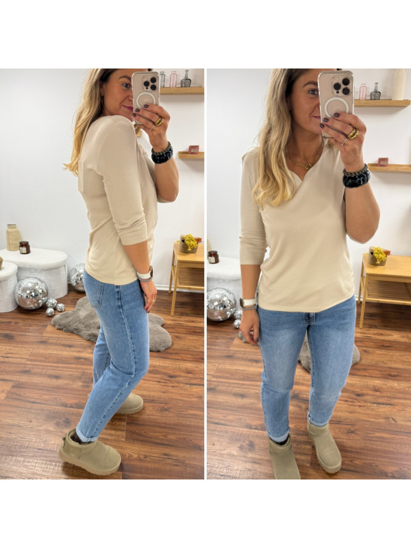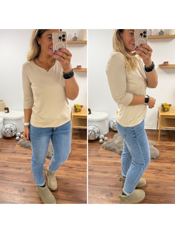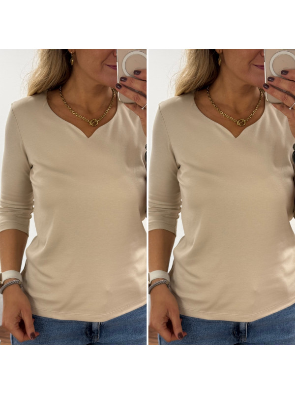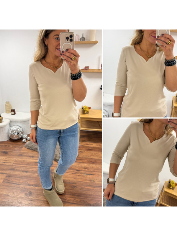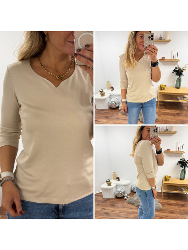 Tee-shirt manches trois quarts beige décolleté forme "coeur" (du 36 au 46)