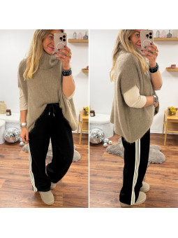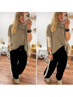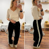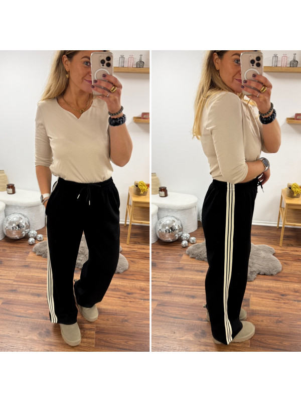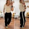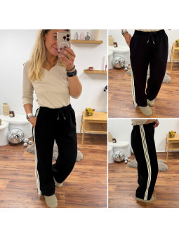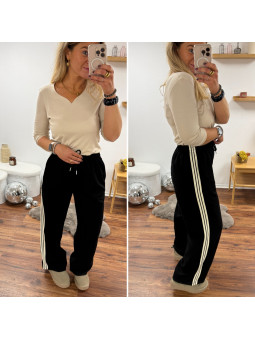 Pantalon fluide souple noir avec lignes beiges sur le côté et...