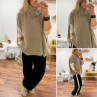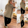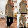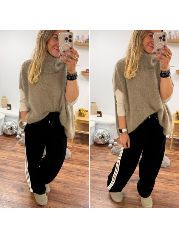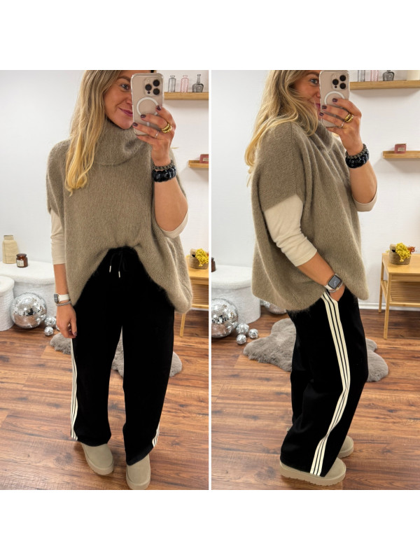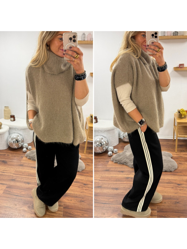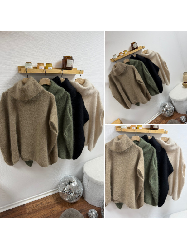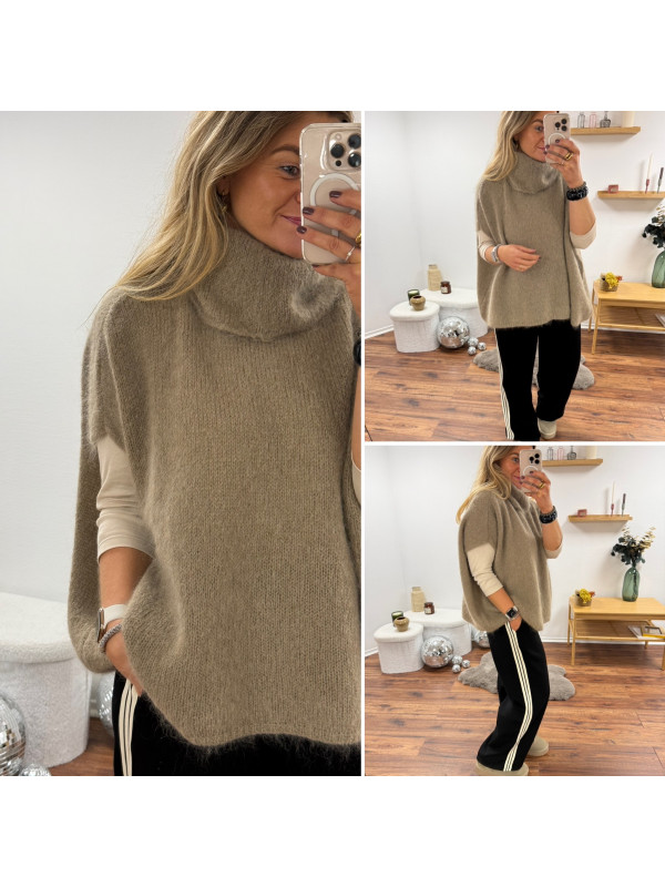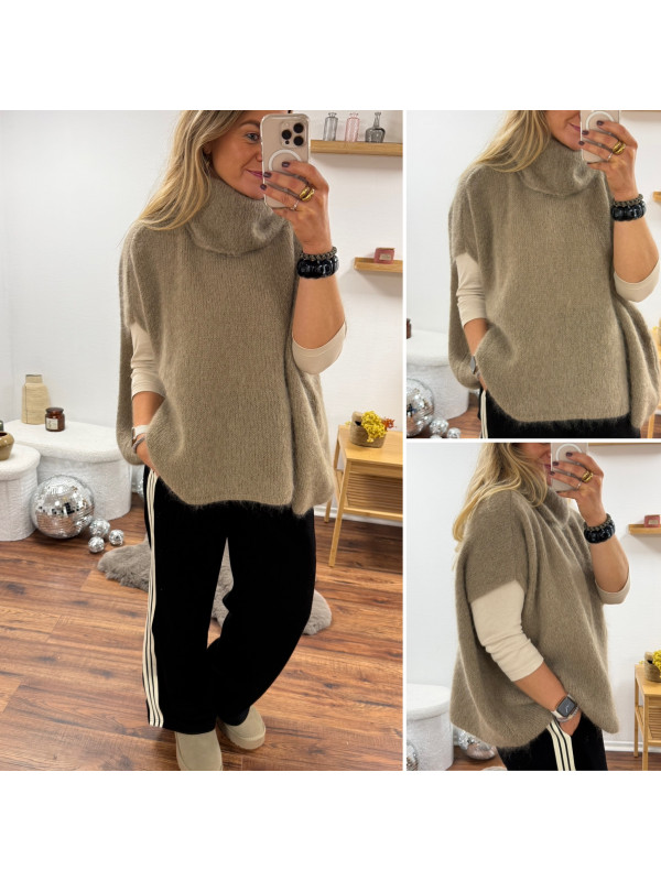 Pull taupe col roulé oversize manches courtes en mohair