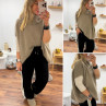 Pantalon fluide souple noir avec lignes beiges sur le côté et...