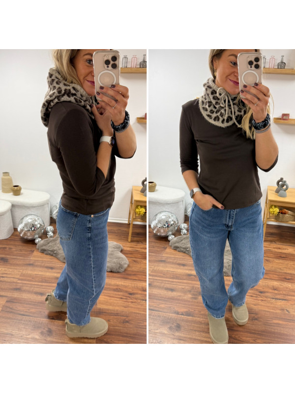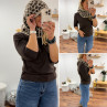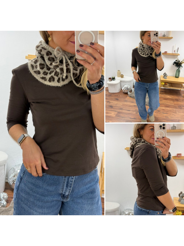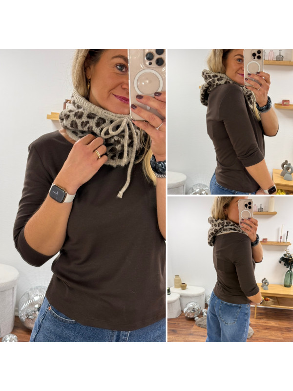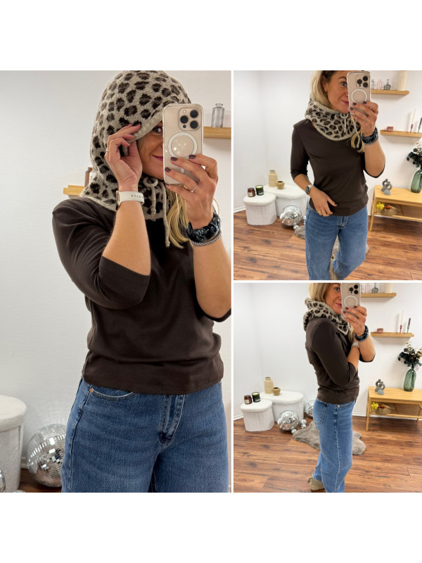 Cagoule en maille léopard sur fond beige (uniquement dispo en boutique)