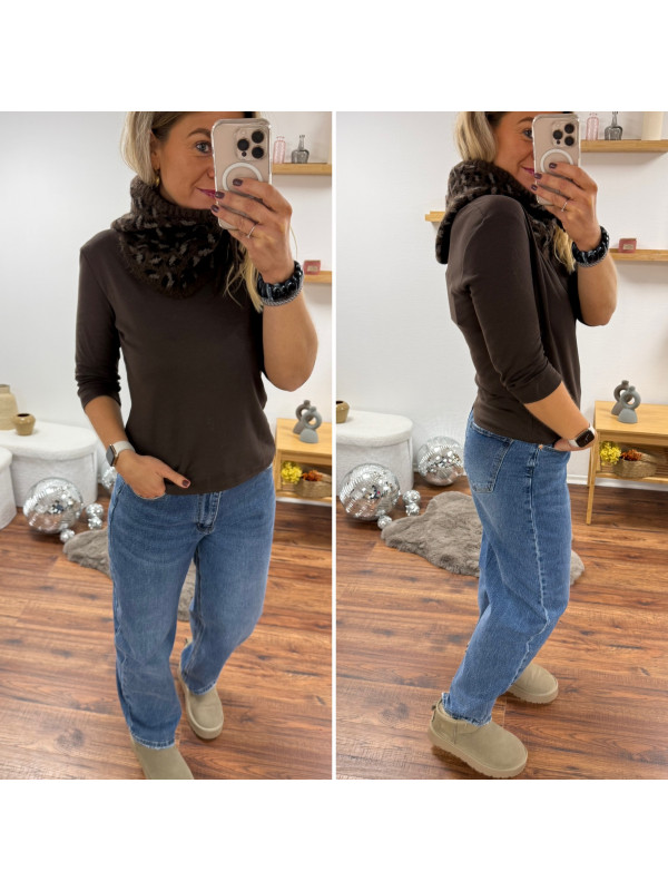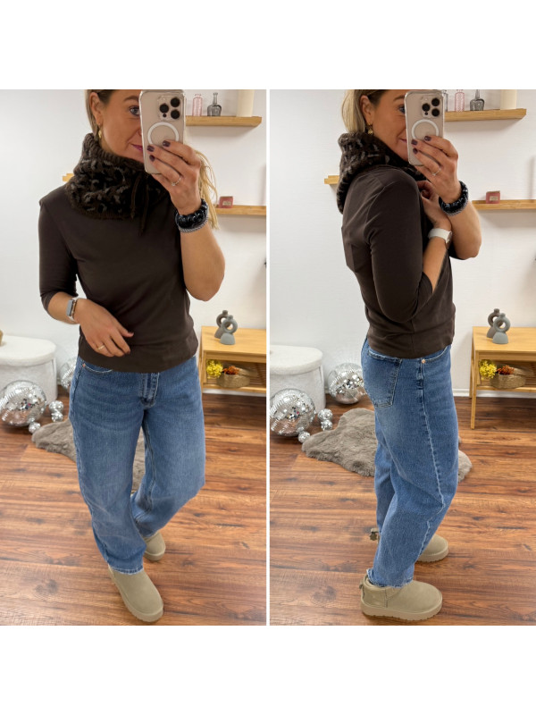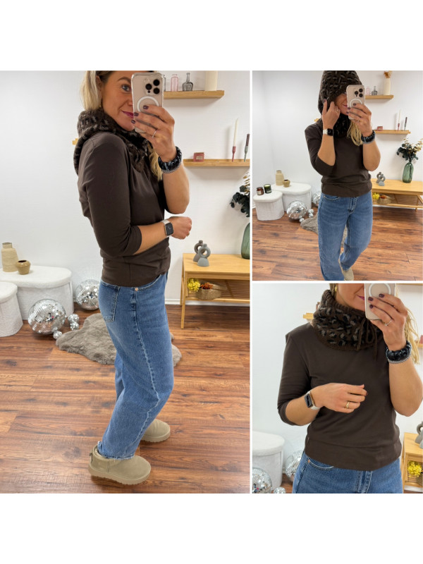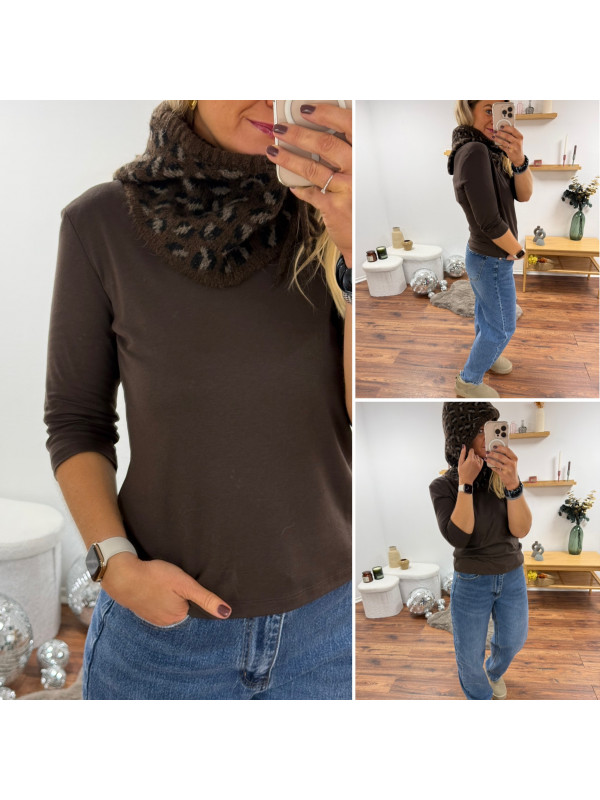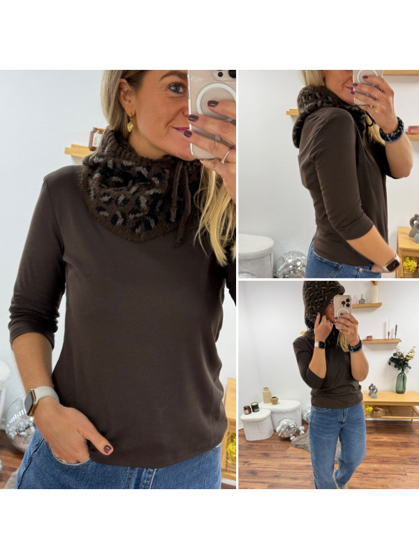 Cagoule en maille léopard sur fond chocolat (uniquement dispo en boutique)
