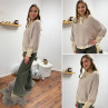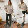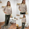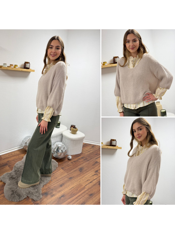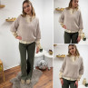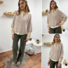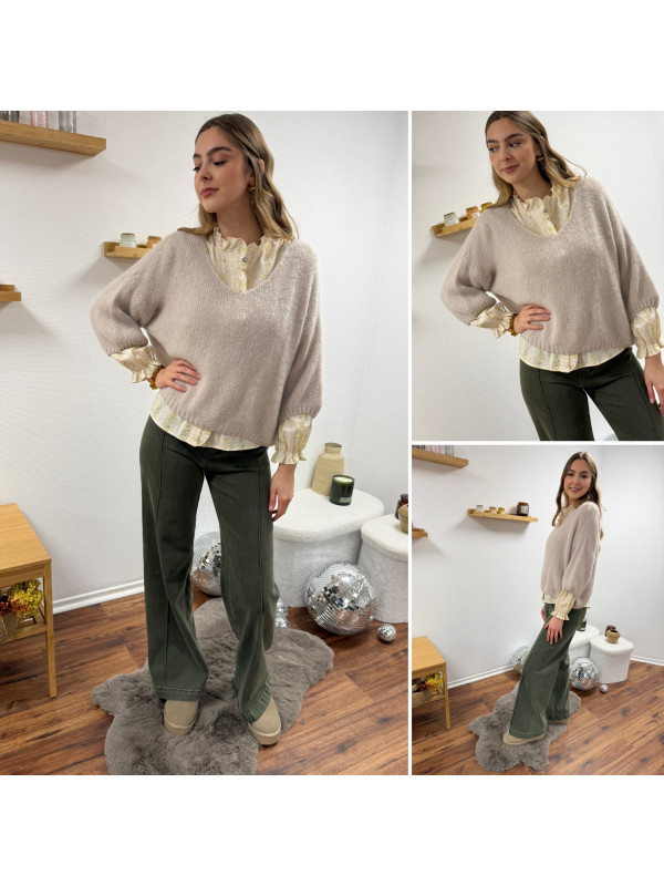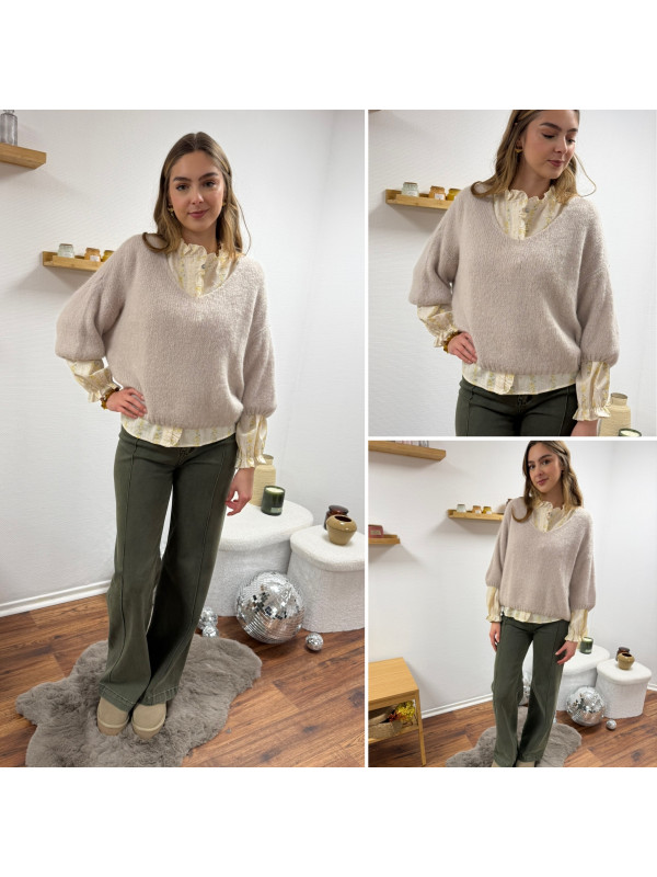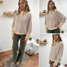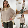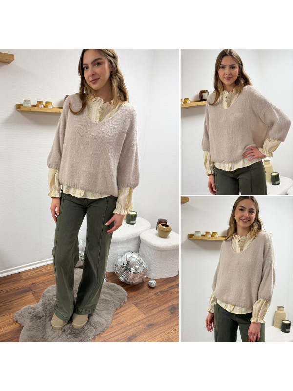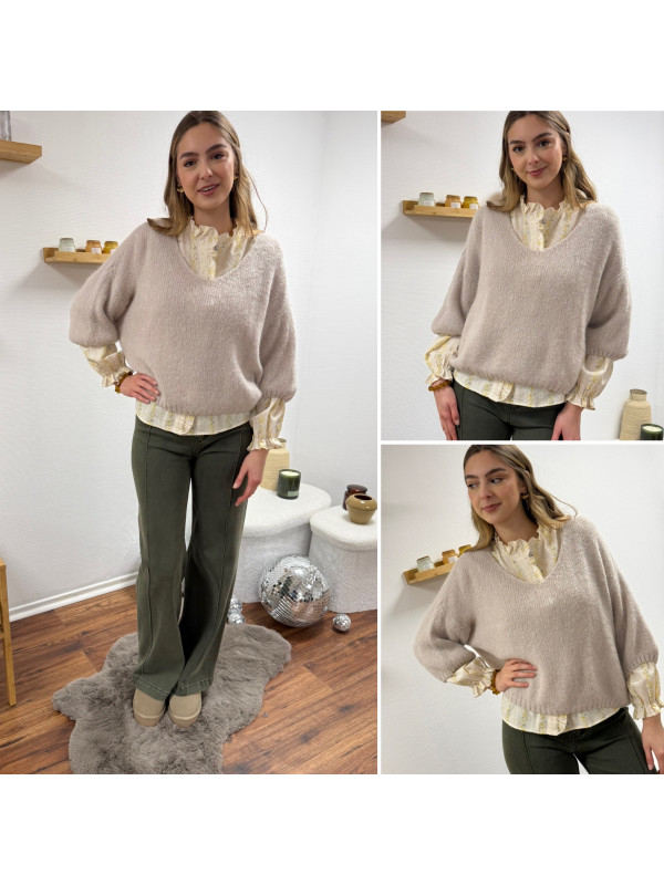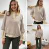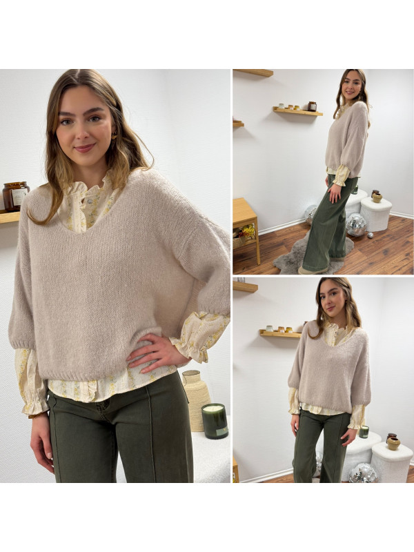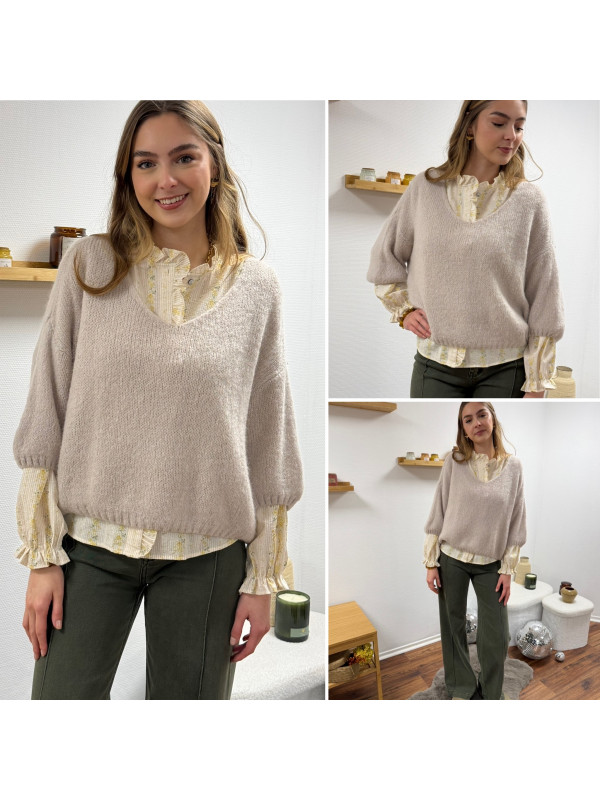 Pull loose manches courtes col V beige