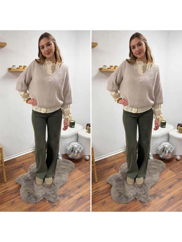 Jean wide leg avec couture sur le devant kaki Disponible du 34...