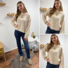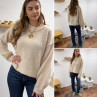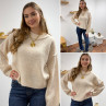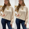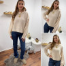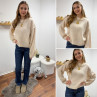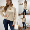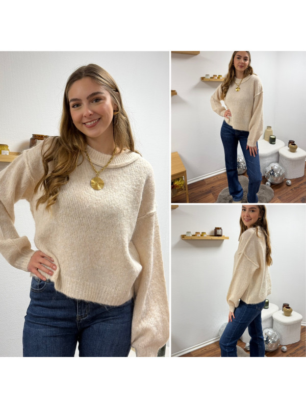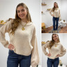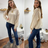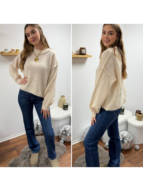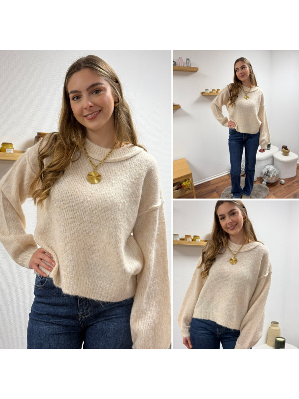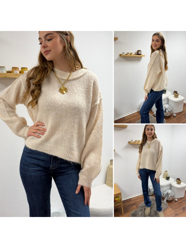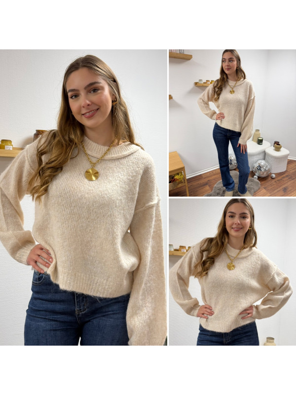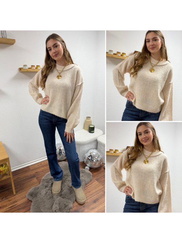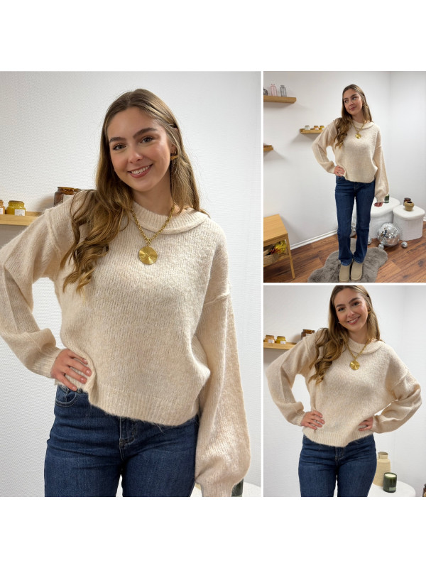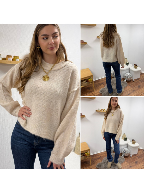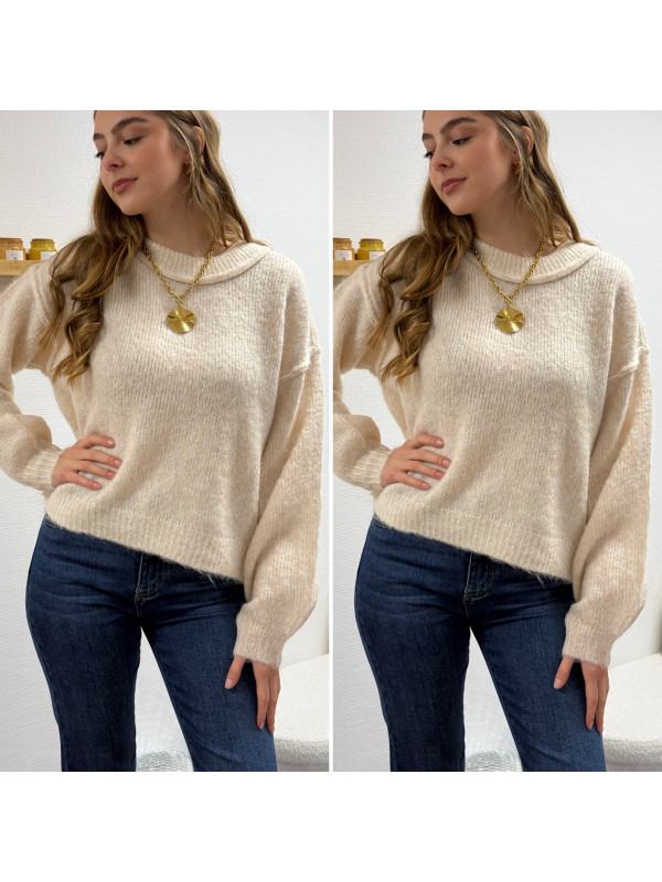 Pull écru col rond avec gros rebord et grosses coutures