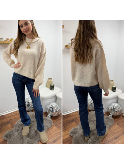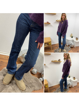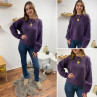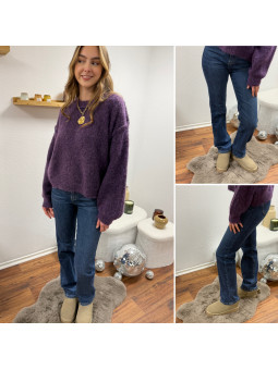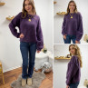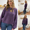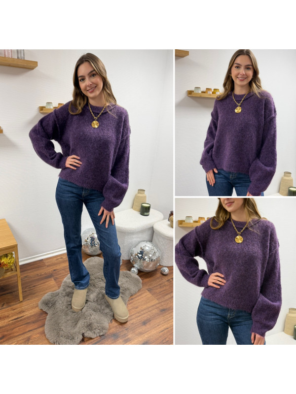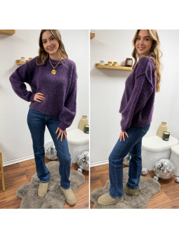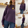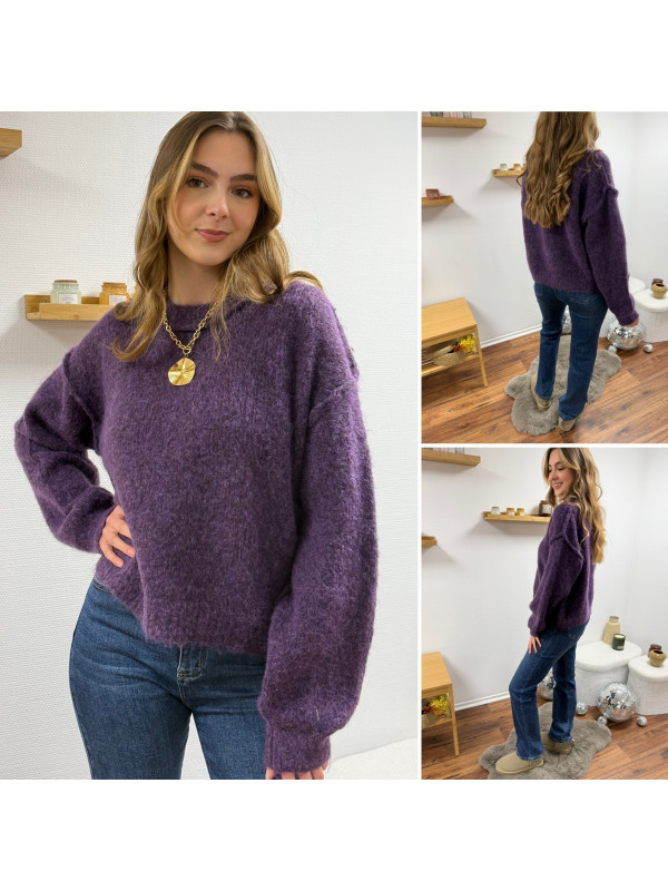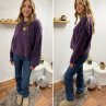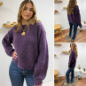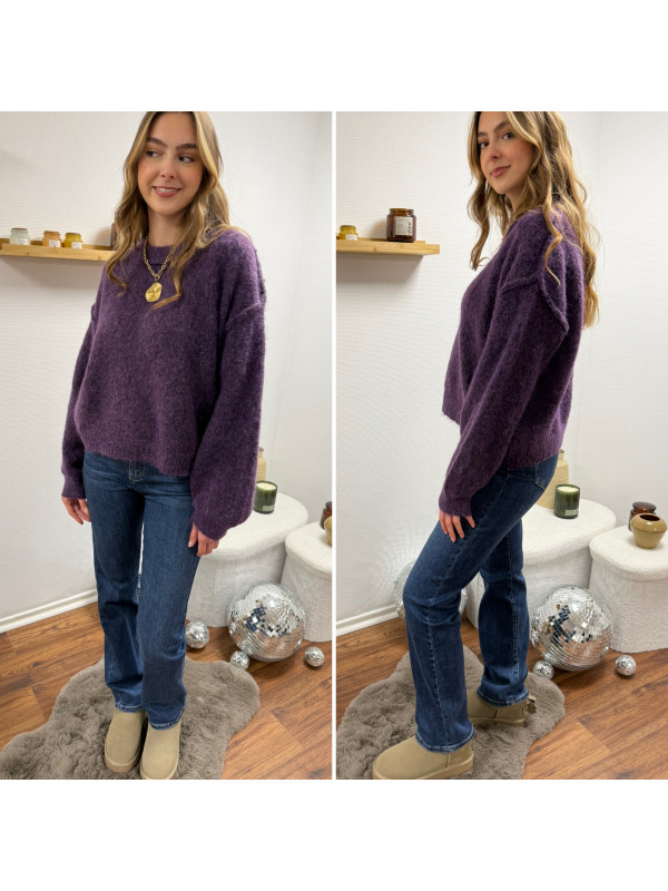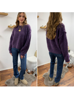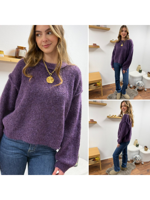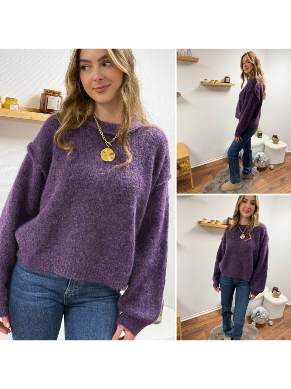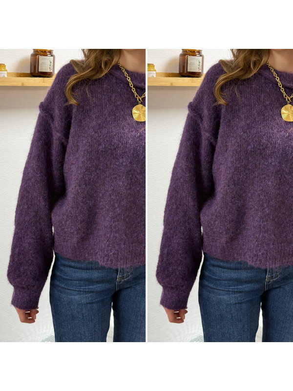 Pull violet col rond avec gros rebord et grosses coutures