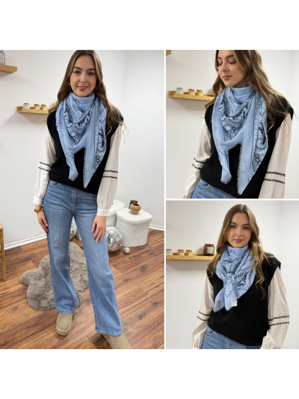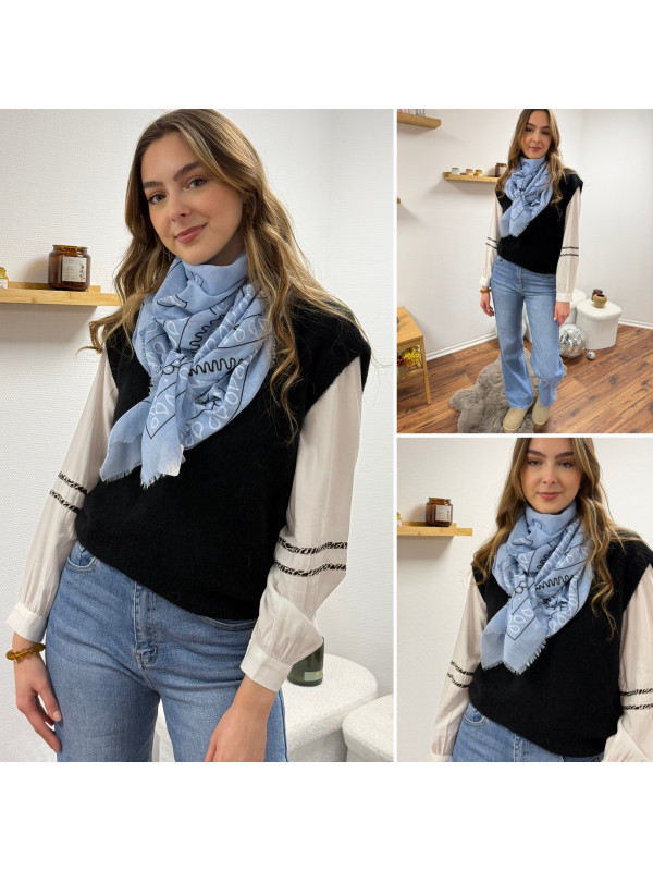 Étole légère façon bandana bleue ciel