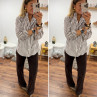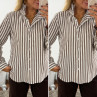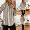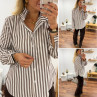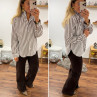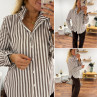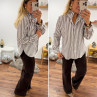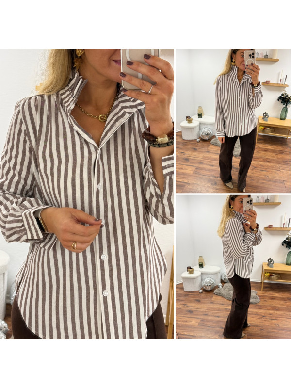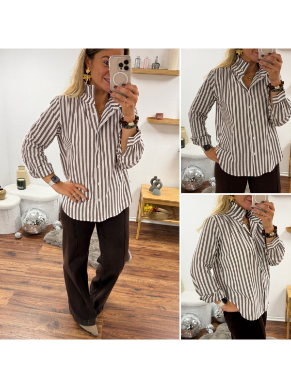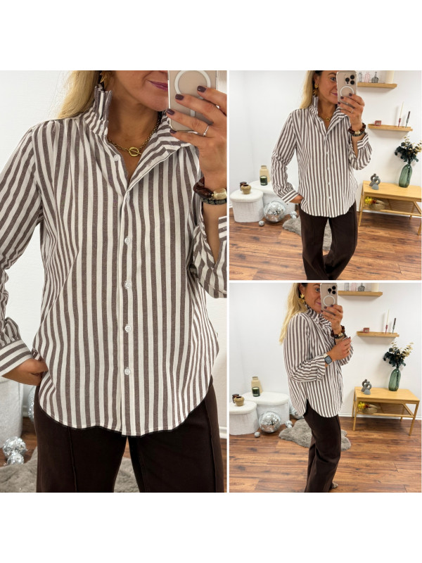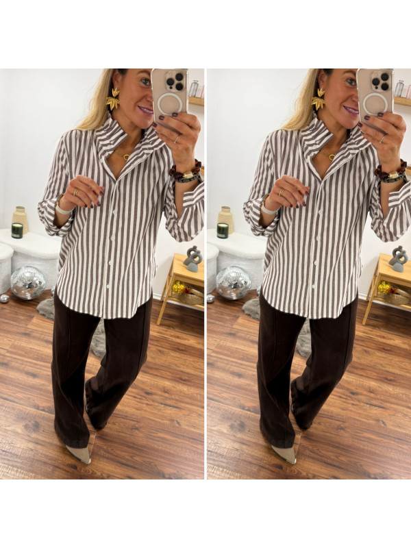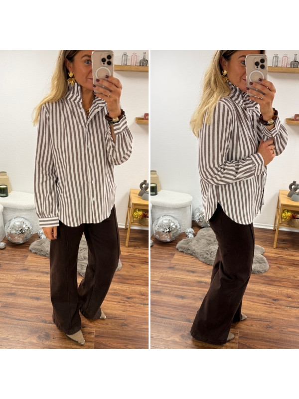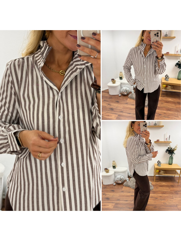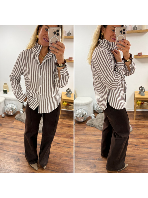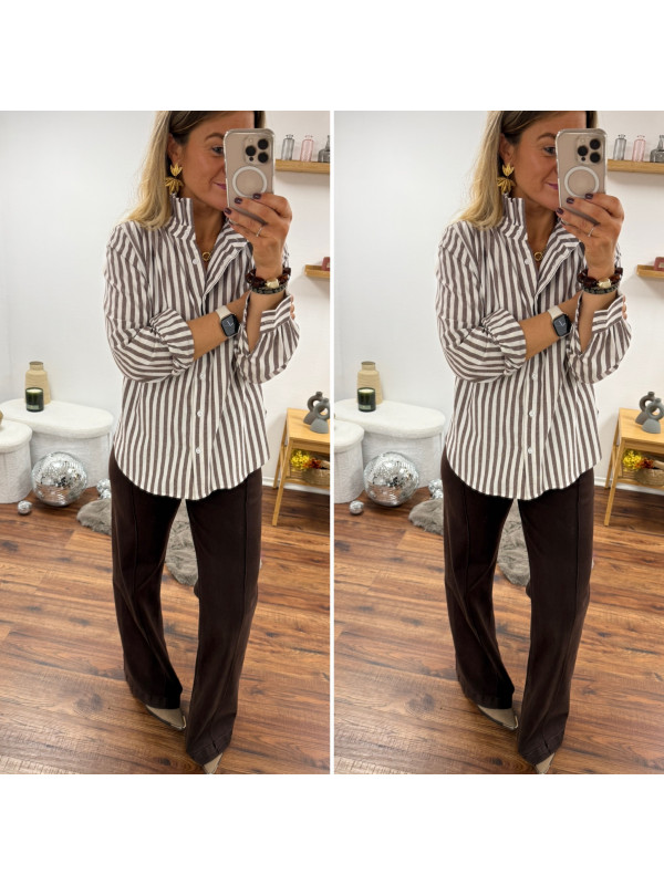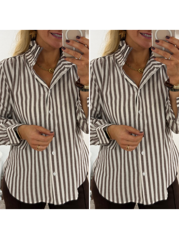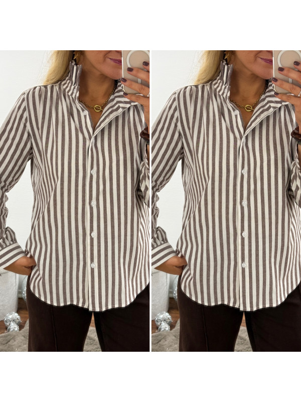 Chemise rayée chocolat et blanche avec volants sur le col