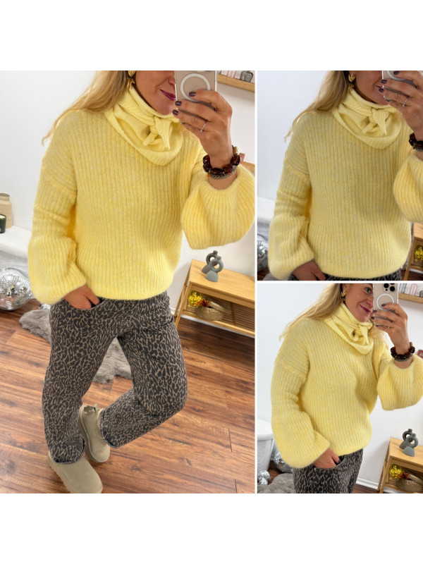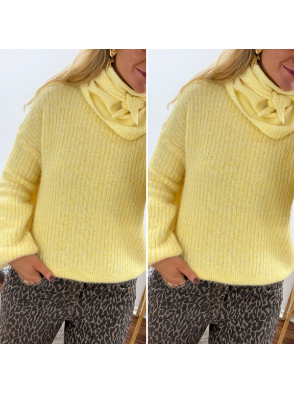 Petit foulard jaune en triangle en maille type Sophie Scarf