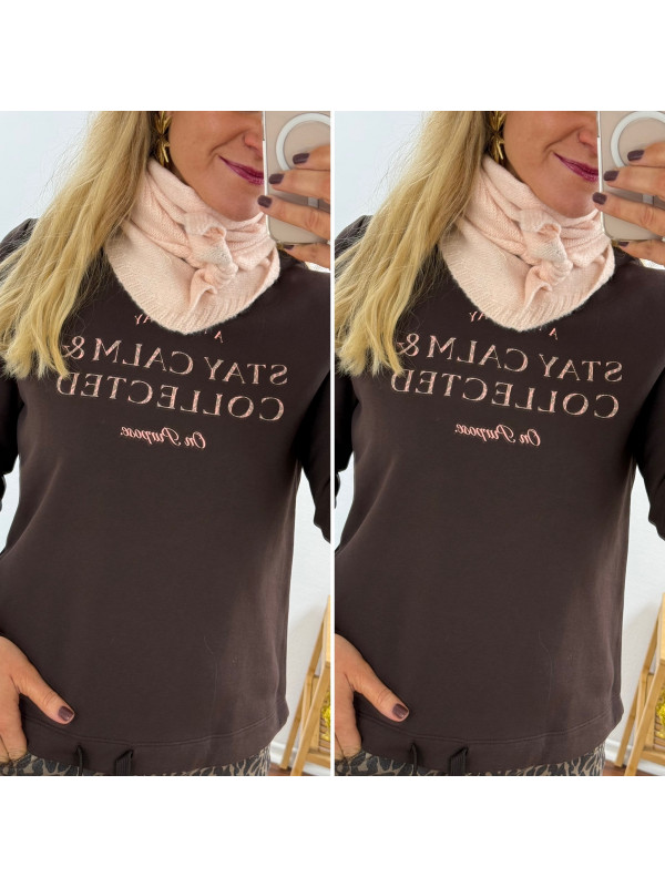Petit foulard rose pâle en triangle en maille type Sophie Scarf
