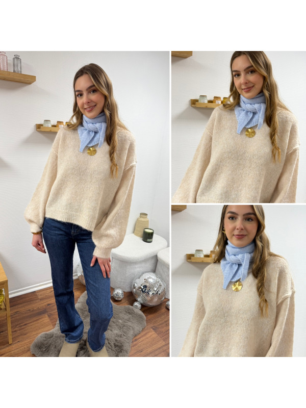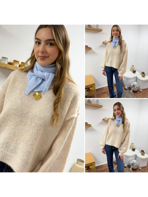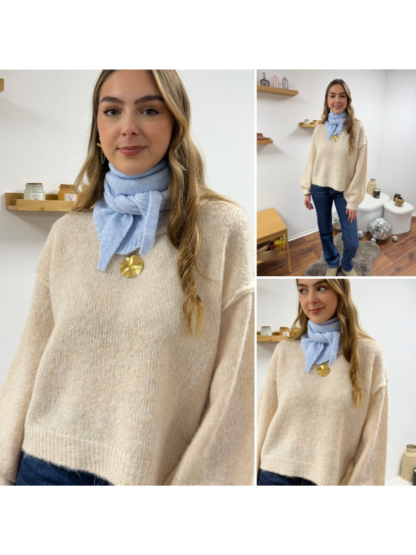 Petit foulard bleu ciel en triangle en maille type Sophie Scarf