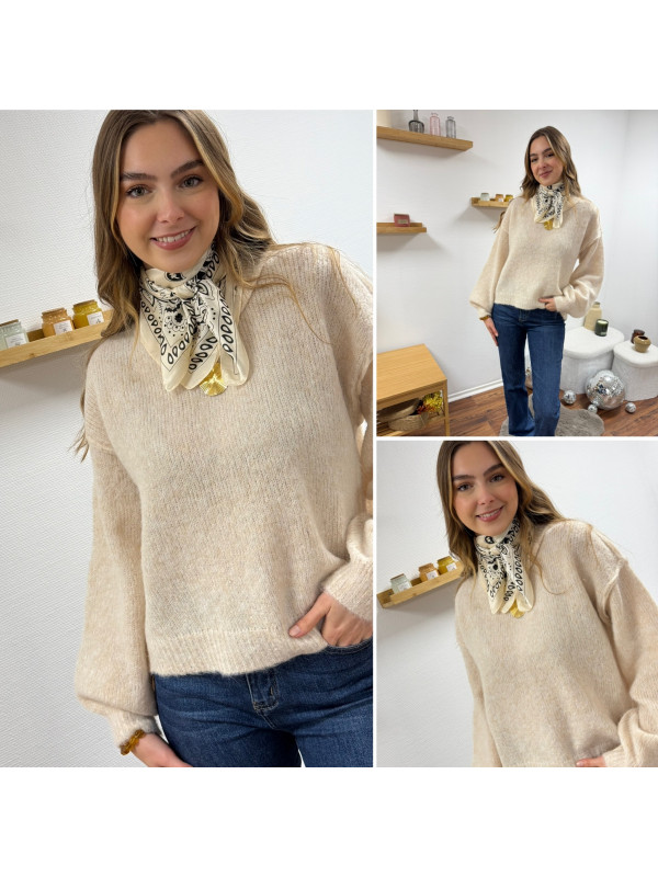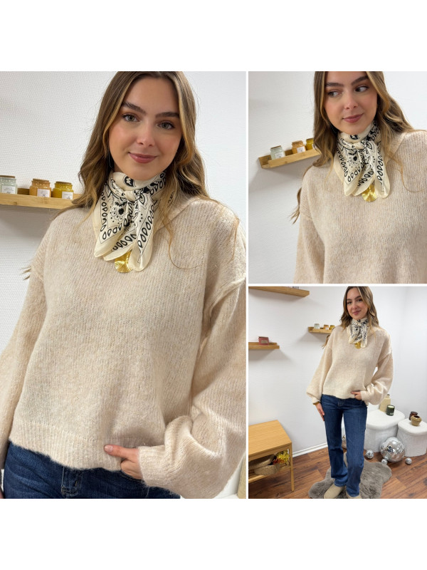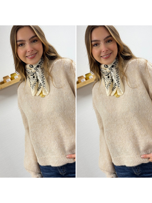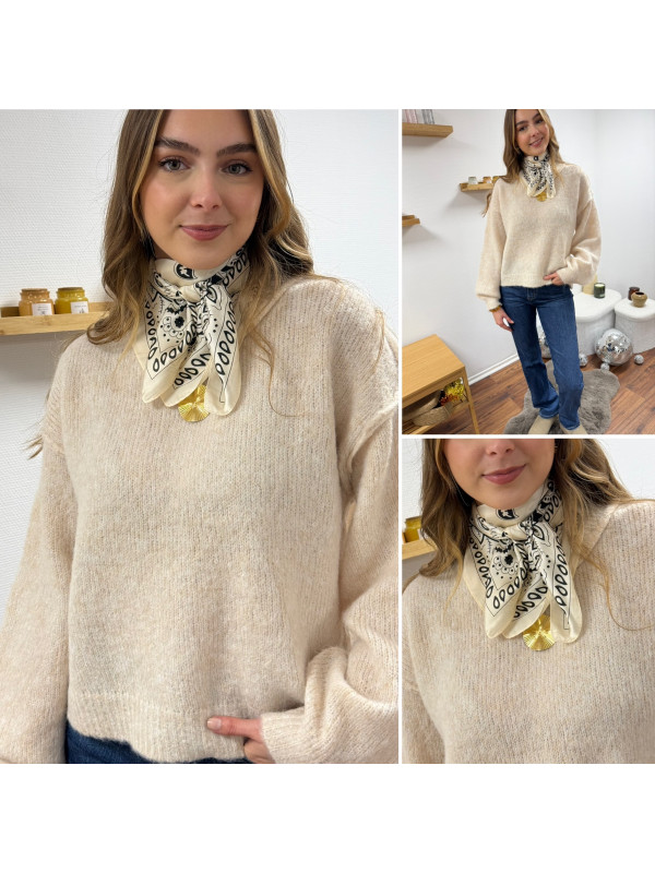 Petit foulard façon soie imprimés bandanas écrus et noirs