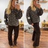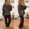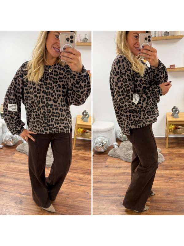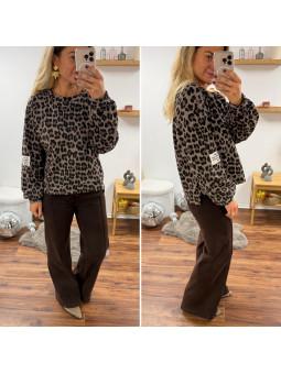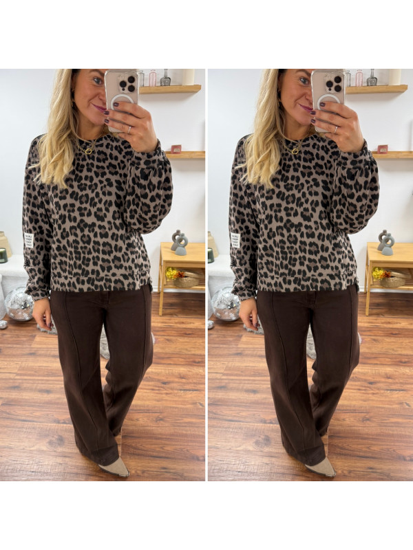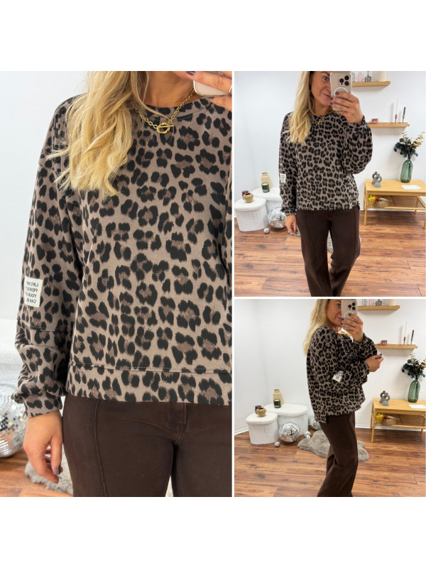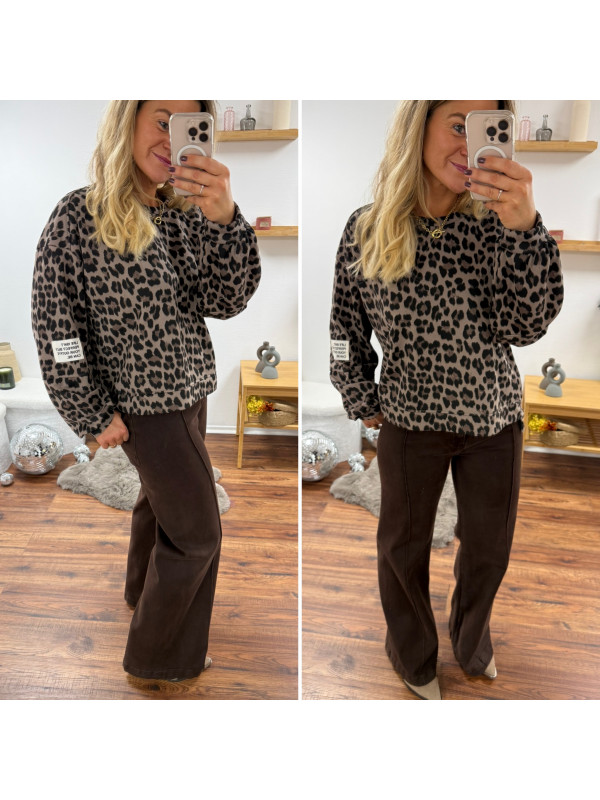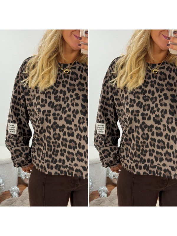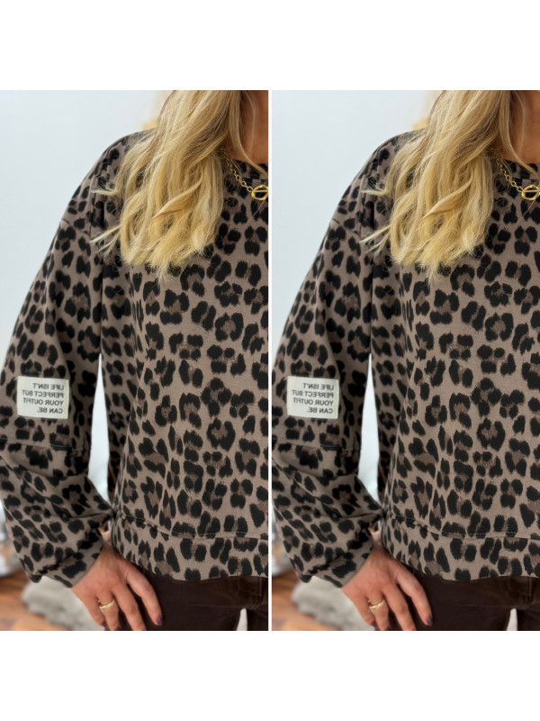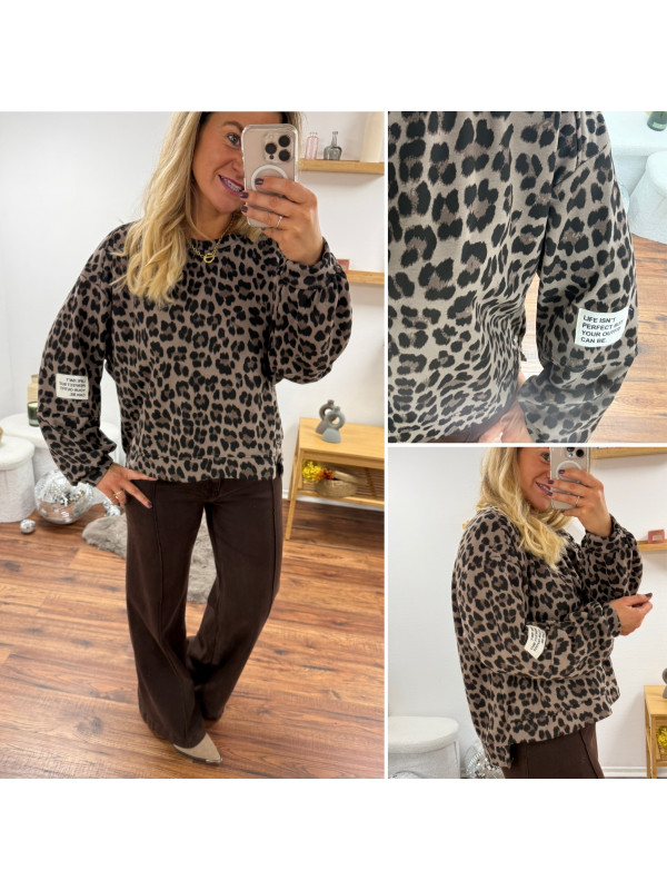 Sweat léopard beige avec logo "life isn't perfect but your outfit can be"